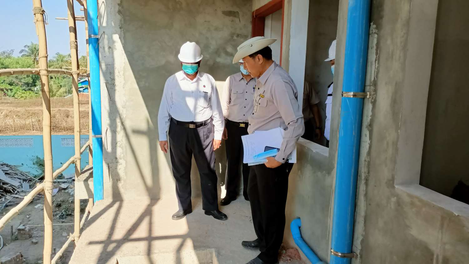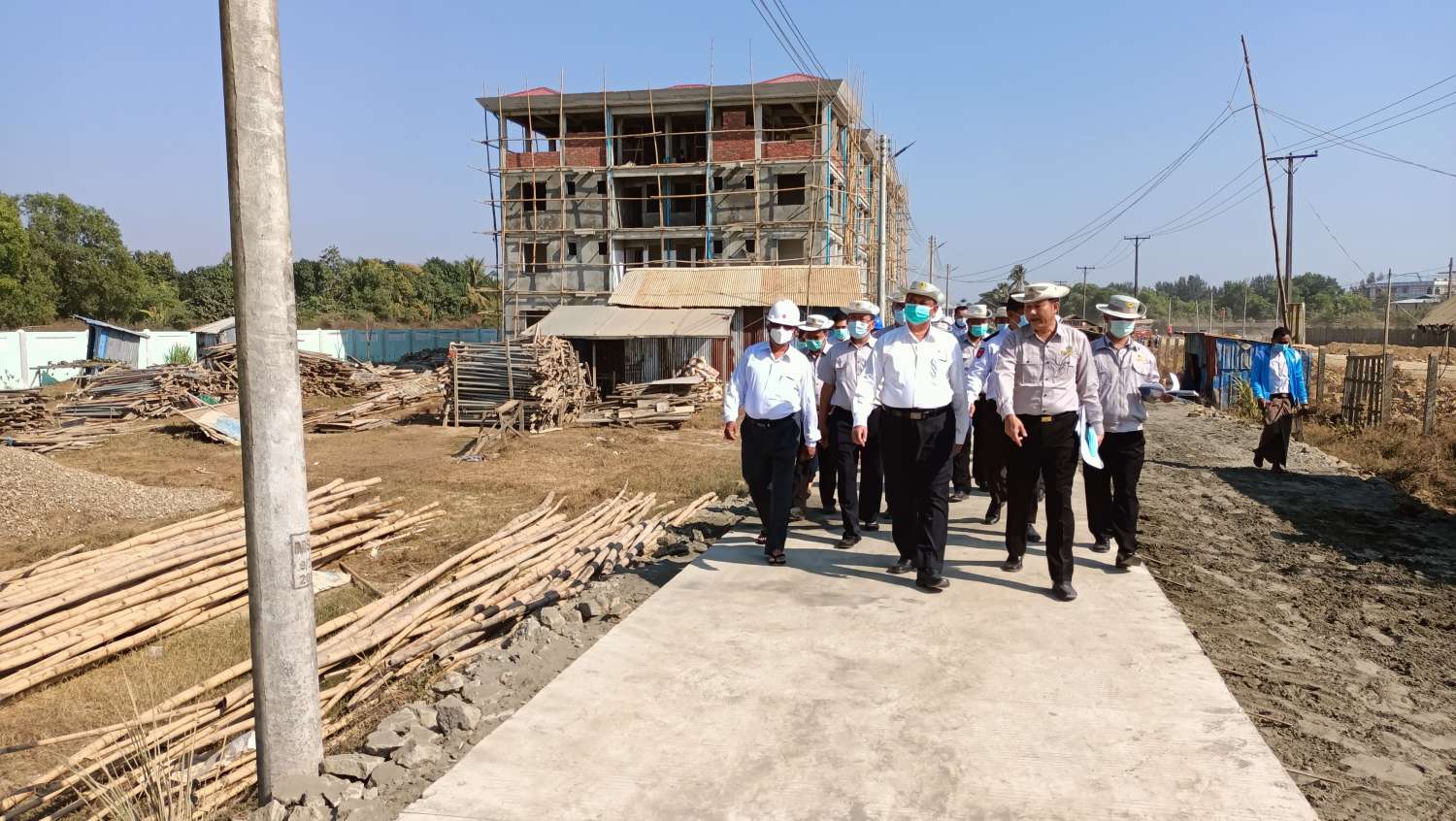 ထို့နောက် ပြည်ထောင်စုဝန်ကြီးနှင့်အဖွဲ့သည် ရခိုင်ပြည်နယ် နိုင်ငံ့ဝန်ထမ်းအငှားအိမ်ရာ တည်ဆောက်ရေး စီမံကိန်းလုပ်ငန်းခွင်အတွင်း အဆောက်အဦ ဆောက်လုပ်နေမှုတို့ကို လိုက်လံ ကြည့်ရှုစစ်ဆေးပြီး အဆောက်အဦများ အရည်အသွေးပြည့်မီရေး၊ ခိုင်ခန့်ရေး၊ လက်ရာသေသပ် ကောင်းမွန်ရေးတို့ကို အထူးအလေးထား ဆောင်ရွက်ရန် မှာကြားသည်။