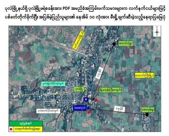 စစ်ကိုင်းတိုင်းဒေသကြီး၊ ပုလဲမြို့ရှိ၊ ပုလဲမြို့မရဲစခန်းအား PDF အမည်ခံ အကြမ်းဖက်သမားများက ဖေဖော်ဝါရီ ၅ ရက် ည ၈ နာရီခွဲခန့်တွင် ရဲစခန်း၏ အရှေ့ဘက် လယ်ကွင်းများအတွင်းမှနေ၍ လက်လုပ်စိန်ပြောင်း၊ လက်နက်ငယ်များဖြင့် လာရောက်ပစ်ခတ် တိုက်ခိုက်ခဲ့သဖြင့် လုံခြုံရေးတပ်ဖွဲ့ဝင်များက ပြန်လည်ခုခံပစ်ခတ်ခဲ့ရာ ည ၁၀ နာရီခွဲခန့်တွင် အကြမ်းဖက်သမားများသည် ရဲစခန်း၏ အနောက်ဘက် မြကုန်းကျေးရွာဘက်သို့ ဆုတ်ခွာထွက်ပြေး သွားခဲ့သည်။