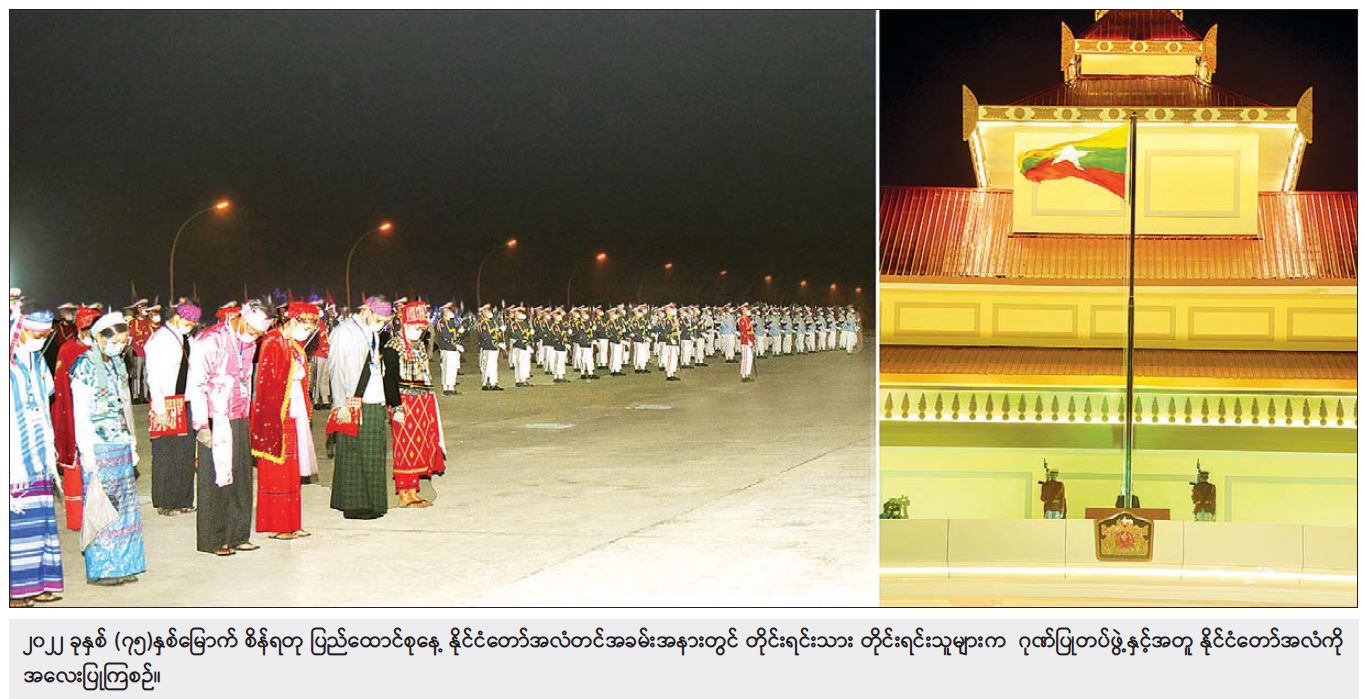 ၂၀၂၂ ခုနှစ် (၇၅)နှစ်မြောက် စိန်ရတု ပြည်ထောင်စုနေ့ နိုင်ငံတော်အလံတင် အခမ်းအနားကို ယနေ့နံနက်ပိုင်းတွင် နေပြည်တော်ရှိ ဗိုလ်ရှုခံ ရင်ပြင်၌ ကျင်းပသည်။