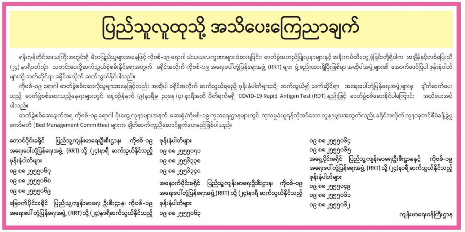 ပြည်သူလူထုသို့ အသိပေးကြေညာချက်