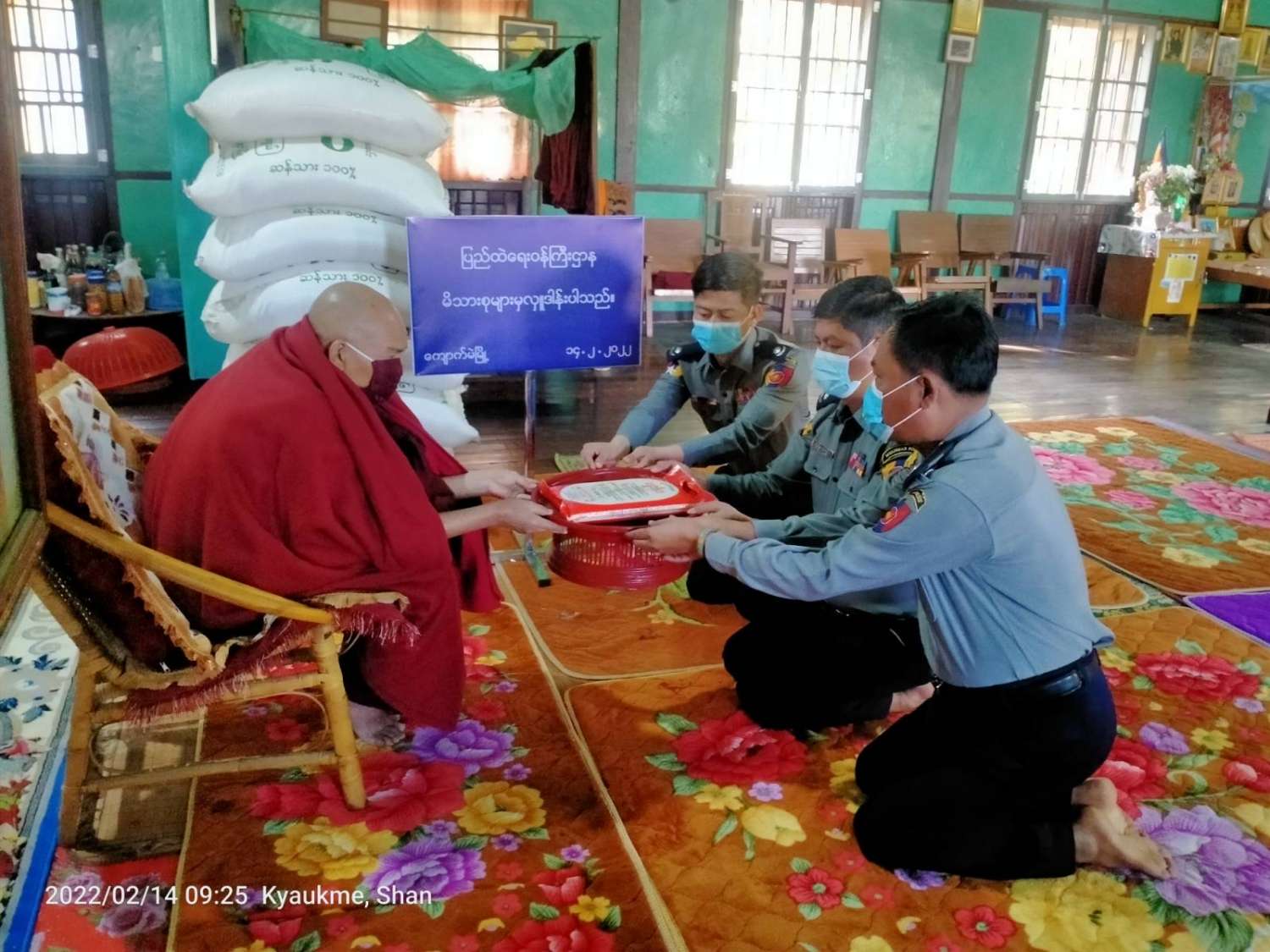 ပြည်ထဲရေးဝန်ကြီးဌာန၊ တပ်ဖွဲ့ဝင်/ဝန်ထမ်း အရာထမ်း၊ အမှုထမ်းမိသားစုများက မြို့နယ်အသီးသီးရှိ ဘုန်းတော်ကြီးကျောင်းများသို့ ဆွမ်းဆန်တော်များ ဆက်ကပ်လှူဒါန်းခြင်းကို ဆောင်ရွက်လျက်ရှိသည်။