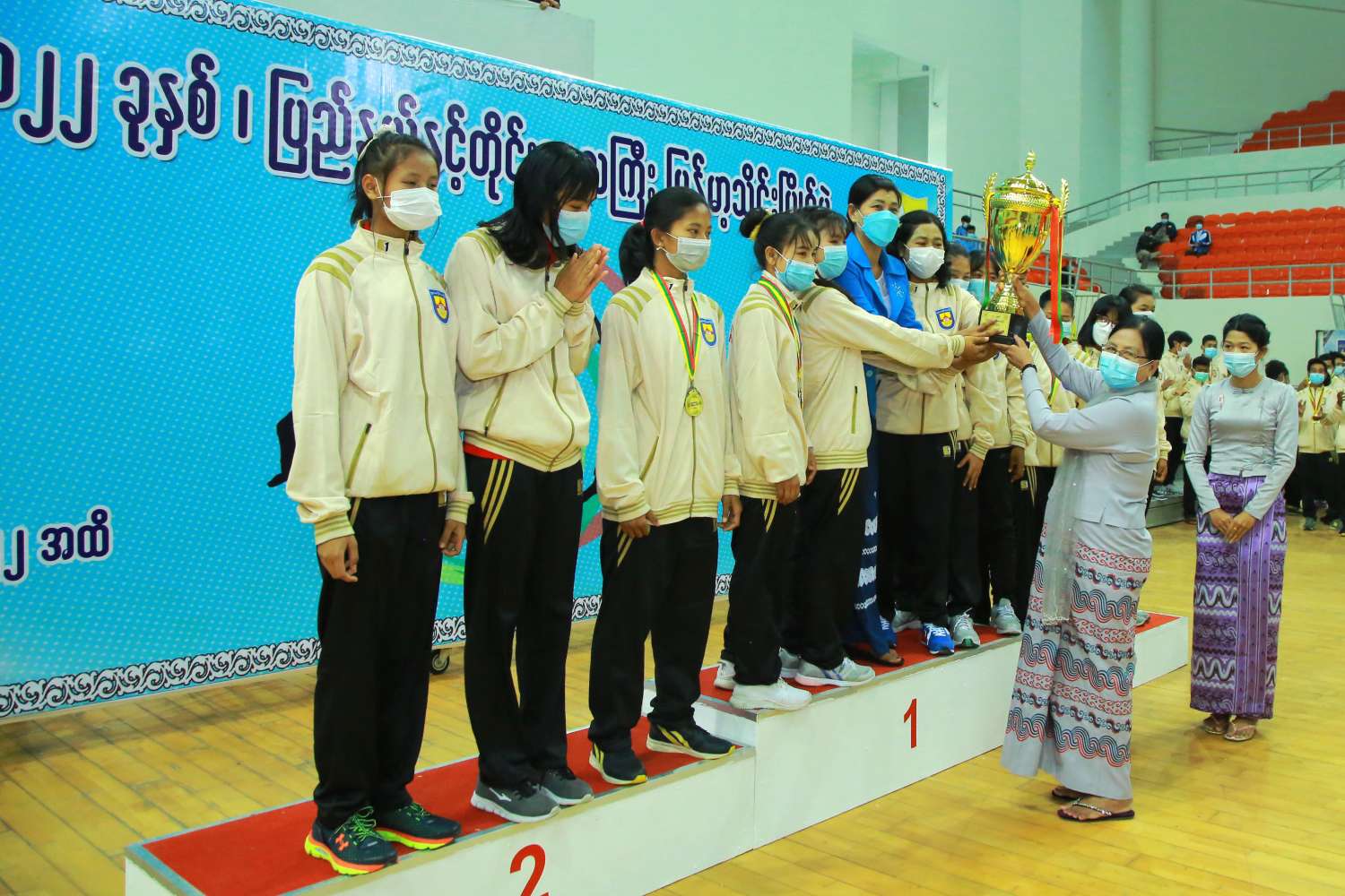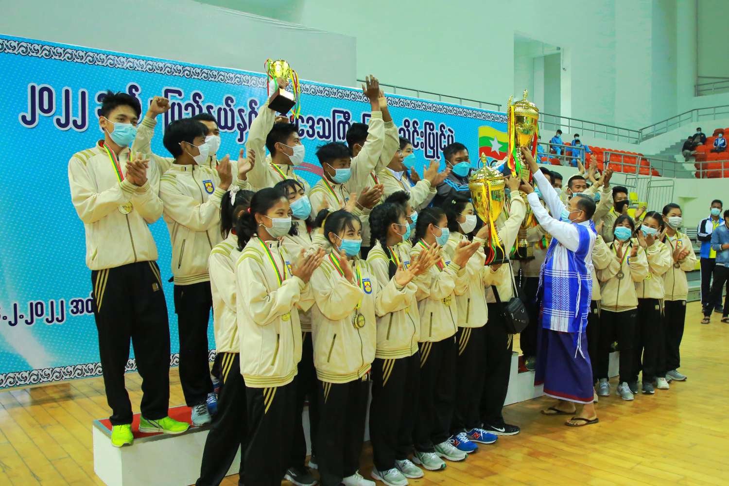 ဆက်လက်၍ နိုင်ငံတော်စီမံအုပ်ချုပ်ရေးကောင်စီဝင် ဦးမောင်းဟာက အမျိုးသား/အမျိုးသမီး လက်သိုင်းအတိုက်ပြိုင်ပွဲတွင် အကောင်းဆုံးဆုရရှိသည့် မောင်ဇွဲဝေယံဖြိုး (ရှမ်း)နှင့် မဆုမြတ်နိုး (တနင်္သာရီ)၊ ဓါးအတိုက်ပြိုင်ပွဲတွင် အကောင်းဆုံးဆုရရှိသည့် မောင်စိုင်းလင်းထွေး (ရှမ်း)နှင့် မဇင်မို့မို့ထွေး (မကွေး) တို့ကို အကောင်းဆုံးအားကစားသမားဆု (Trophy)နှင့် ဆုကြေးငွေများကိုလည်းကောင်း၊ နိုင်ငံတော်စီမံအုပ်ချုပ်ရေးကောင်စီဝင် Jeng Phang နော်တောင်က ရွှေ(၆)ခု၊ ငွေ(၆)ခု၊ ကြေး(၁)ခုဖြင့် အမျိုးသားတံခွန်စိုက်ဒိုင်းရရှိသည့် မန္တလေးတိုင်းဒေသကြီးအသင်းကိုလည်းကောင်း၊ နိုင်ငံတော်စီမံ အုပ်ချုပ်ရေးကောင်စီဝင် ဒေါ်အေးနုစိန်က ရွှေ (၇)ခု၊ ငွေ (၂)ခု၊ ကြေး (၅)ခု ဖြင့် အမျိုးသမီးတံခွန် စိုက်ဒိုင်းရရှိသည့် မန္တလေးတိုင်းဒေသကြီးအသင်းကို လည်းကောင်း၊ နိုင်ငံတော်စီမံအုပ်ချုပ်ရေးကောင်စီဝင် မန်းငြိမ်းမောင်က ရွှေ (၁၃)ခု၊ ငွေ (၈)ခု၊ ကြေး (၆)ခုဖြင့် စုပေါင်းတံခွန်စိုက်ဒိုင်းရရှိသည့် မန္တလေး တိုင်းဒေသကြီးအသင်းကိုလည်းကောင်း တံခွန်စိုက်ဒိုင်းဆုများ ပေးအပ်ချီးမြှင့်ခဲ့ကြသည်။