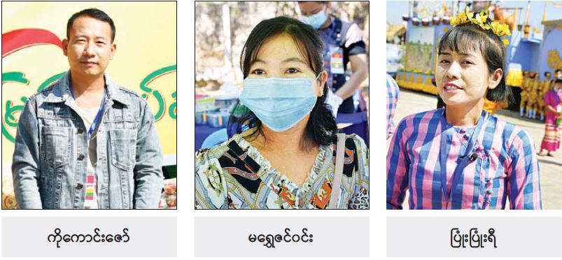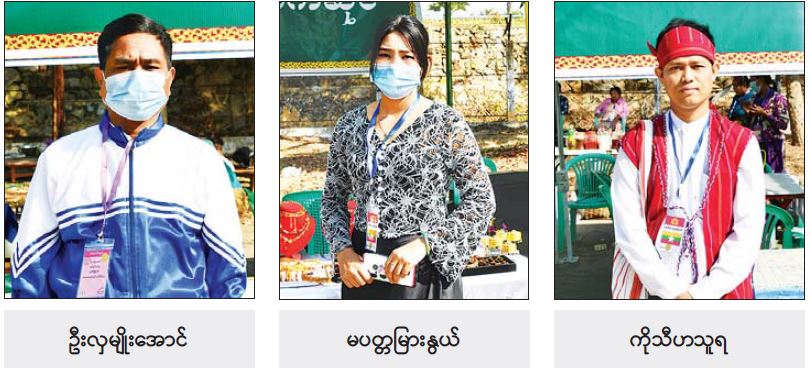 ကျွန်မကတော့ ရခိုင်ပြည်နယ် ရမ်းဗြဲ ကပါ။ အခုလောလောဆယ်တော့ နေပြည်တော်မှာ နေပါတယ်။ ရခိုင်ရိုးရာအစား အစာထဲမှာ အဓိကရောင်းချတာ ကတော့ မုန့်တီပါ။ ပြီးတော့ ရခိုင်က အခုမှစထုတ်တဲ့ ဒေသထွက် ဓနိဝိုင်၊ ဓနိဖူးလက်ဖက်ခြောက်၊ ဓနိသကာရည်၊ ပယင်းရတနာ၊ ပယင်းလိမ်းဆေး ဖျန်းဆေး/ ရှူဆေးနဲ့ သံလိုက်ဆီလိမ်းဆေးတွေကို အဓိက ရောင်းချပါတယ်။ မနေ့ကဆိုရင် လာရောက်ဝယ်ယူ စားသုံးသူများတော့ ရခိုင်မုန့်တီဆို အစောကြီးကတည်းက ကုန်သွားပါတယ်။ ဓနိဝိုင်တွေဆိုရင်လည်း အများကြီးရောင်းရပါတယ်။ ပယင်း သံလိုက်ဆီ လိမ်းဆေးဆိုရင် ဒီနေ့ ခင်းကျင်းရောင်းချဖို့တောင် မရှိသလောက် ဖြစ်သွားပါတယ်။ ပြည်ထောင်စုနေ့ အထိမ်းအမှတ် ပြုလုပ်တဲ့ပွဲဖြစ်တဲ့အတွက် တိုင်းဒေသကြီးနဲ့ ပြည်နယ်တွေရဲ့ အထင်ကရတွေကို ကြည့်ရှုခံစားလို့ရသလို တိုင်းရင်းသားရိုးရာ အစားအစာတွေ အားလုံး တစ်နေရာတည်းမှာ ရရှိနိုင်တဲ့ အပြင် ဈေးနှုန်းတွေ ကလည်း သင့်တင့်တဲ့အတွက် ပြည်သူတွေအားလုံးအနေနဲ့ လာရောက်ကြပါဖို့ ဖိတ်ခေါ်ချင်ပါတယ်။