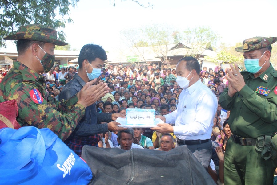 ထိုသို့ ဆောင်ရွက်ပေးလျက်ရှိရာ ယနေ့တွင် စစ်ကိုင်းတိုင်းဒေသကြီး ဝန်ကြီးချုပ် ဦးမြတ်ကျော်၊ အနောက်မြောက်တိုင်းစစ်ဌာနချုပ် တိုင်းမှူး ဗိုလ်မှူးချုပ် သန်းထိုက် နှင့် တာဝန်ရှိသူများသည် ပုလဲမြို့နယ်၊ ဇီးဖြူကုန်းကျေးရွာနှင့် အင်မထီး ကျေးရွာများမှ NLD ပါတီ ထောက်ခံသူအစွန်း ရောက် အကြမ်းဖက်အဖွဲ့နှင့် PDF အမည်ခံအကြမ်းဖက်အဖွဲ့များ၏ အကြမ်းဖက်လုပ်ရပ် များကြောင့်ထွက်ပြေး တိမ်းရှောင်နေကြရသော ဒေသခံပြည်သူများအား လုံခြုံစိတ်ချရသည့် နေရာများသို့ ပြန်လည်ခေါ်ယူစုစည်း၍ လုံခြုံရေးနှင့် နေထိုင်စားသောက်ရေးတို့ကို စီစဉ်ပေးပြီး တွေ့ဆုံ အားပေးစကားပြောကြားကာ စားသောက်ဖွယ်ရာများနှင့် အသုံးအဆောင် ပစ္စည်းများ ထောက်ပံ့ပေးအပ်ခဲ့ကြောင်း သတင်းရရှိသည်။