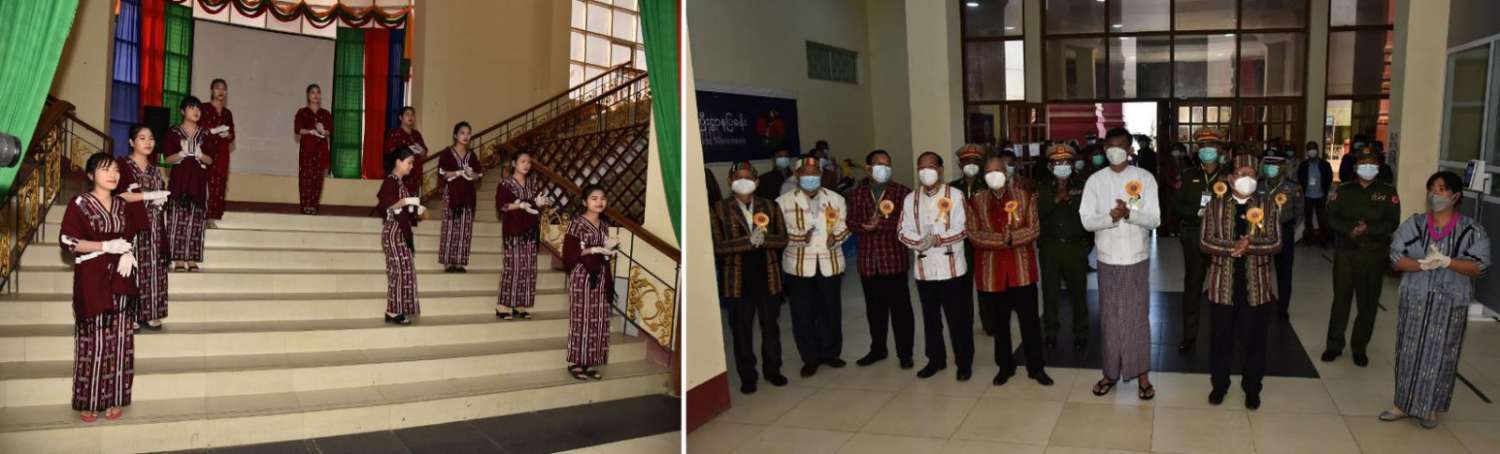 ၂၀၂၂ ခုနှစ် (၇၄)နှစ်မြောက် ချင်းအမျိုးသားနေ့ အခမ်းအနားကို နေ့လယ် ပိုင်းတွင် ဟားခါးမြို့၊ ချင်းပြည်နယ်အစိုးရအဖွဲ့ရုံး၊ အစည်းအဝေးခန်းမ၌ ကျင်းပ ပြုလုပ်ခဲ့ရာ အခမ်းအနားသို့ နိုင်ငံတော်စီမံအုပ်ချုပ်ရေးကောင်စီအဖွဲ့ဝင် ကာကွယ်ရေးဝန်ကြီးဌာန၊ ပြည်ထောင်စုဝန်ကြီး ဗိုလ်ချုပ်ကြီး မြထွန်းဦးနှင့် အဖွဲ့ဝင် ဦးမောင်းဟာတို့ တက်ရောက်ကြသည်။