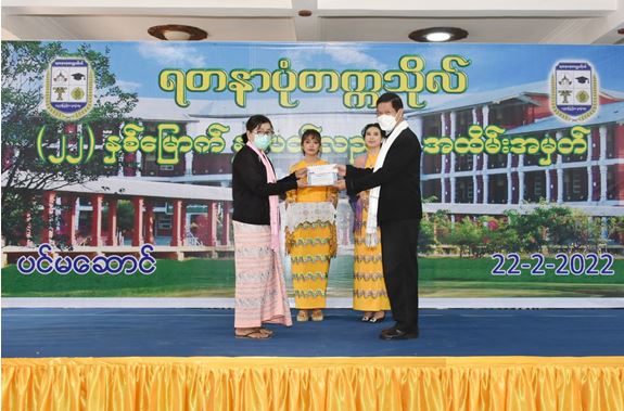 ဆက်လက်၍ ရတနာပုံတက္ကသိုလ်ပါမောက္ခချုပ် ဒေါက်တာတင့်မိုးသူဇာက တက္ကသိုလ်နှစ်ပတ်လည် အမှတ်တရစကား ပြောကြားပြီးနောက် (၂၂)နှစ်မြောက် နှစ်ပတ်လည်နေ့ အထိမ်းအမှတ်ပြပွဲ ပြိုင်ပွဲများ၊ စာတမ်းဖတ်ပွဲနှင့် သင်တန်းဆင်းပွဲများအတွက် ဂုဏ်ပြုဆုများ ချီးမြှင့်သည်။