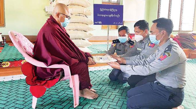 ပြည်ထဲရေးဝန်ကြီးဌာန၊ တပ်ဖွဲ့ဝင်/ဝန်ထမ်း အရာထမ်း၊ အမှုထမ်း မိသားစုများက မြို့နယ်အသီးသီးရှိ ဘုန်းတော်ကြီးကျောင်းများ သို့ ဆွမ်းဆန်တော်များ ဆက်ကပ်လှူဒါန်းလျက်ရှိသည်။