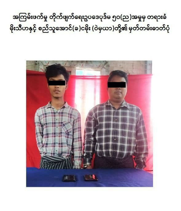 ရန်ကုန်တိုင်းဒေသကြီး၊ လှိုင်သာယာ(အနောက်ပိုင်း)မြို့နယ်၊ အမှတ်(၁၁)ရပ်ကွက်နေ မိုးသီဟ(ဘ) ဦးဇော်မိုးနှင့် စည်သူအောင်(ခ)ငမိုး(ဘ)ဦးမောင်မိုး တို့သည် ၂၀၂၁ ခုနှစ်၊ ဖေဖော်ဝါရီလမှစ၍ ဆူပူဆန္ဒပြမှုဖြစ်စဉ်များတွင် တက်ကြွစွာပါဝင် လှုပ်ရှားခြင်း၊ အကြမ်းဖက်မှု တိုက်ဖျက်ရေးဗဟိုအဖွဲ့၏ အမိန့်ကြော်ငြာစာ အမှတ် (၂/၂၀၂၁)ဖြင့် အကြမ်းဖက်အုပ်စုများ အဖြစ် သတ်မှတ်ကြေညာထားသည့် အဖွဲ့အစည်းများနှင့် ဆက်သွယ်ခြင်း၊ ငွေကြေး ထောက်ပံ့ခြင်းများ ပြုလုပ်ခဲ့သည့်အတွက် စစ်အုပ်ချုပ်ရေး (Martial Law) စစ်ခုံရုံးဖွဲ့၍ စစ်ဆေးမှုများဆောင်ရွက်ခဲ့ရာ အကြမ်း ဖက်မှုတိုက်ဖျက်ရေး ဥပဒေပုဒ်မ ၅၀(ည) အရ ၂၀၂၂ ခုနှစ်၊ ဖေဖော်ဝါရီ ၂၅ ရက်တွင် ၎င်းတို့အား “ထောင်ဒဏ်တစ်သက်” ပြစ်ဒဏ်ကို အမိန့်ချ မှတ်လိုက်ကြောင်း သိရှိရသည်။