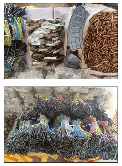 ဖြစ်စဉ်တွင် တရားခံကျား ၇ ဦး၊ မ ၃ ဦးပေါင်း ၁၀ တို့အား KA-25 ၄ လက်၊ လက်လုပ်ပစ္စတို ၅ လက်၊ လက်လုပ်ရှော့တိုက်ဗုံး ၄ လုံး၊ ကျည်အိမ် ၁၂ ခု၊ ၇.၆၂ ကျည် ၁,၀၀၀ တောင့်၊ လက်ပစ်ဗုံး ၃၄ လုံး၊ လက်လုပ်မိုင်း ၃၄ လုံး၊ လွယ်ကြိုး ၂ ချောင်း၊ ယမ်းတောင့် ၁,၆၉၅ ချောင်း၊ ဒီတိုနေတာ ၄,၉၄၀ ချောင်း၊ ယမ်းကြိုး ၃ ခွေ၊ TNT ယမ်းပြင်းမှုန့် ၁ အိတ်၊ ငွေကျပ် ၉၀ သိန်း၊ ဖောက်ခွဲရေးဆက်စပ်ပစ္စည်းများ နှင့်အတူ ဖမ်းဆီးရမိခဲ့သည်။