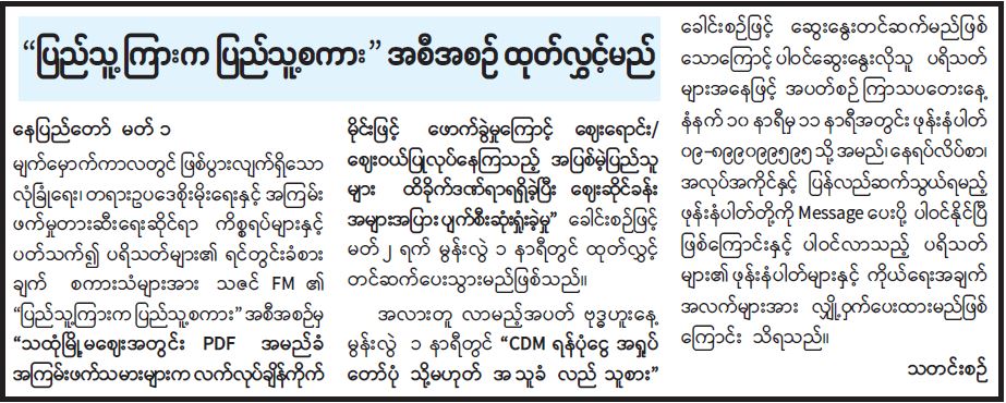 "ပြည်သူ့ကြားက ပြည်သူ့စကား" အစီအစဉ်ထုတ်လွှင့်မည်