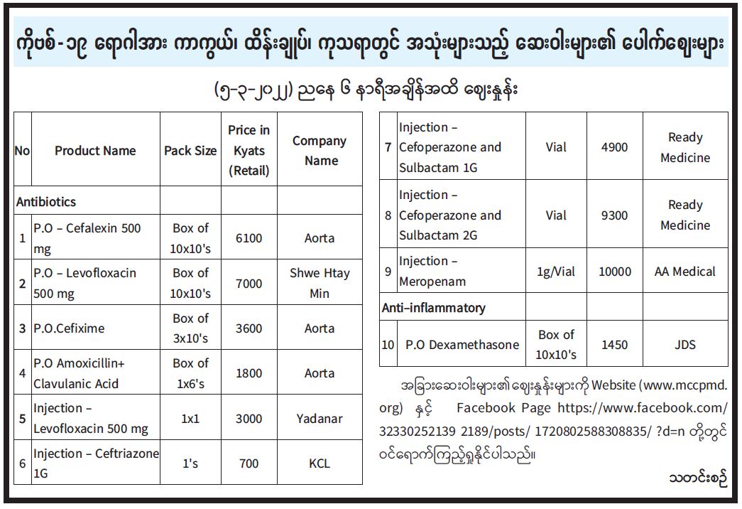ကိုဗစ်-၁၉ ရောဂါအား ကာကွယ်၊ ထိန်းချုပ်၊ ကုသရာတွင် အသုံးများသည့် ဆေးဝါးများ၏ ပေါက်ဈေးများ