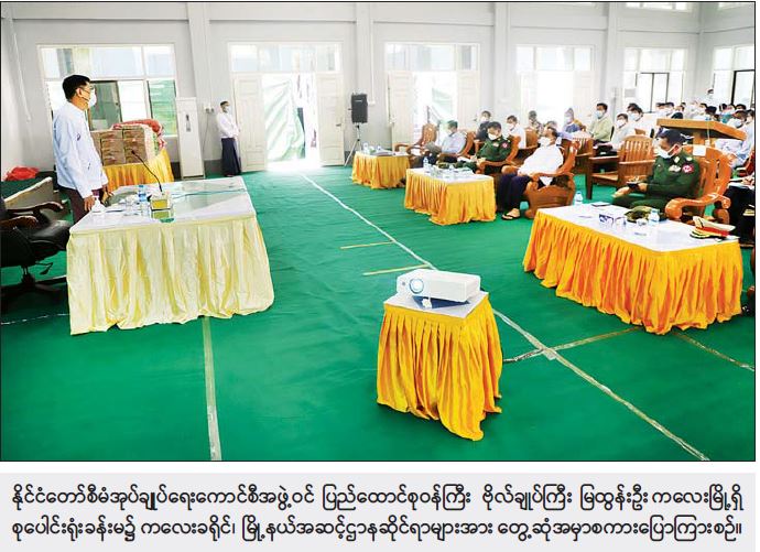 မွန်းလွဲပိုင်းတွင် နိုင်ငံတော်စီမံအုပ်ချုပ်ရေးကောင်စီအဖွဲ့ဝင်၊ ကာကွယ်ရေးဝန်ကြီးဌာန ပြည်ထောင်စုဝန်ကြီး ဗိုလ်ချုပ်ကြီး မြထွန်းဦးနှင့်အဖွဲ့သည် မုံရွာမြို့ရှိ စစ်ကိုင်းတိုင်း ဒေသကြီးအစိုးရအဖွဲ့ရုံး၊ အစည်းအဝေးခန်းမ(၁)၌ တိုင်းဒေသကြီးအစိုးရအဖွဲ့မှ ဌာနဆိုင်ရာ များနှင့်တွေ့ဆုံသည်။