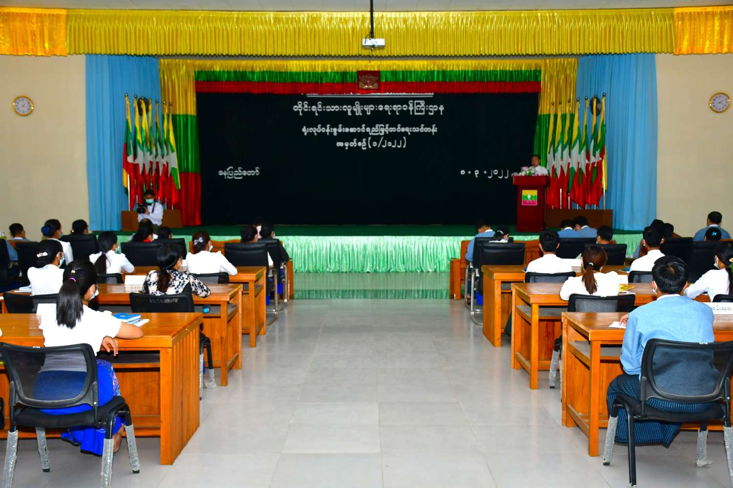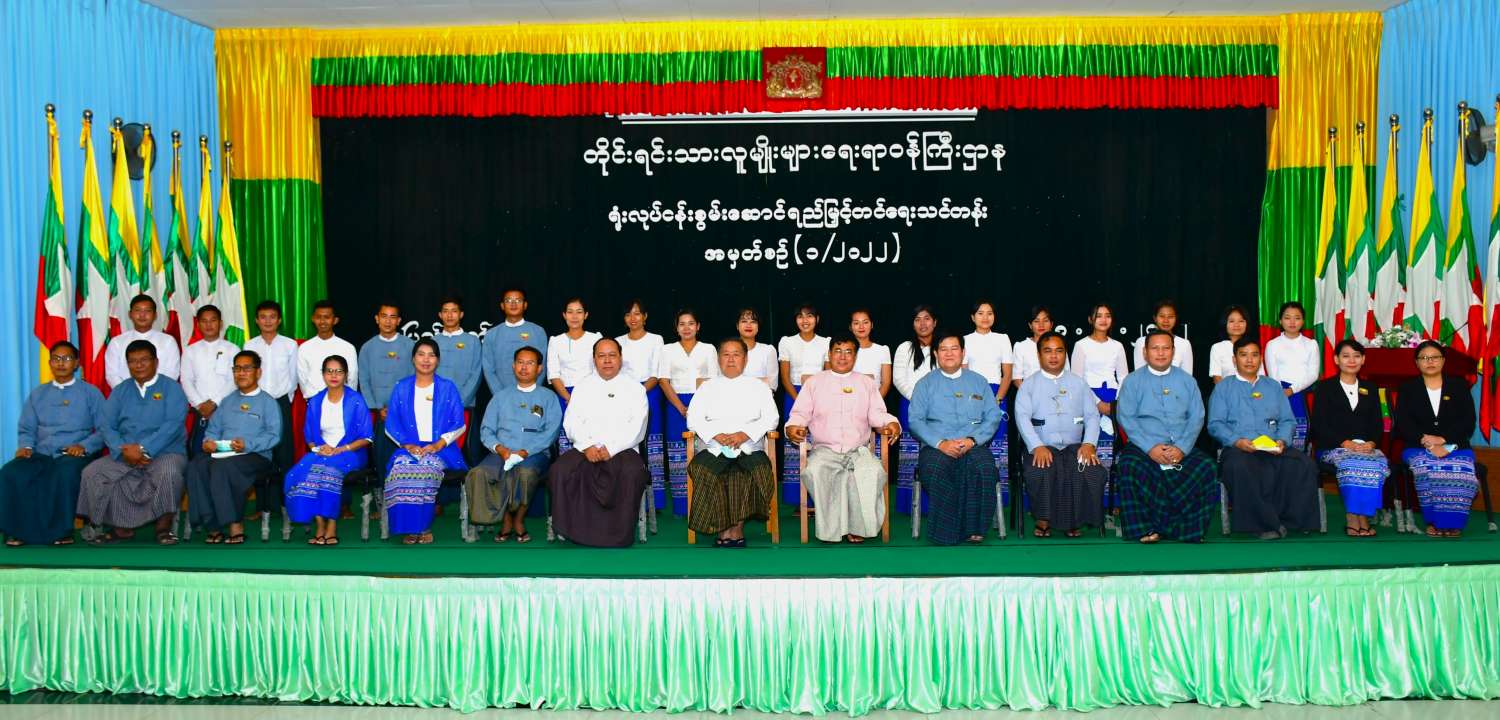 တိုင်းရင်းသားလူမျိုးများရေးရာဝန်ကြီးဌာန၊ ဝန်ထမ်းစွမ်းဆောင်ရည်မြှင့်တင်ရေး (အမှုထမ်း) သင်တန်း အမှတ်စဉ်(၁/၂၀၂၂) ဖွင့်ပွဲအခမ်းအနားကို ယနေ့ မွန်းလွဲ၁ နာရီတွင် တိုင်းရင်းသား လူမျိုးများရေးရာဝန်ကြီးဌာန၊ အစည်းအဝေးခန်းမ၌ ကိုဗစ်-၁၉ တားဆီး ကာကွယ်ရေး၊ ကျန်းမာရေးဆိုင်ရာ ညွှန်ကြားချက်များနှင့်အညီ ကျင်းပရာ ပြည်ထောင်စုဝန်ကြီး ဦးစောထွန်းအောင်မြင့်၊ ဒုတိယဝန်ကြီး ဦးဇော်အေးမောင်၊ အမြဲတမ်းအတွင်းဝန်၊ ညွှန်ကြား ရေးမှူးချုပ်များ၊ တာဝန်ရှိသူများ၊ သင်တန်းနည်းပြများနှင့် သင်တန်းသား၊ သင်တန်းသူများ တက်ရောက်ခဲ့ကြသည်။