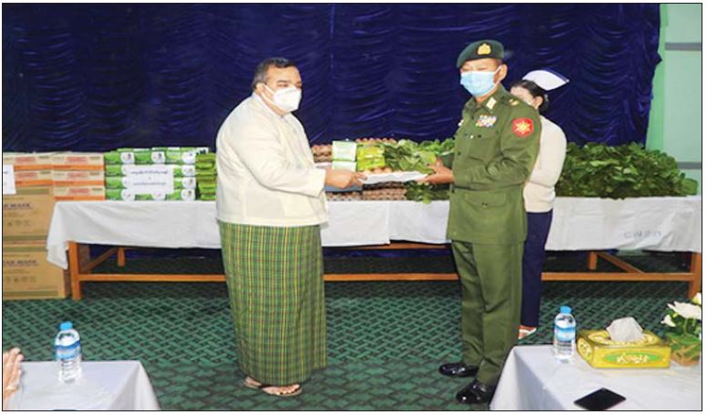 ရှမ်းပြည်နယ်(မြောက်ပိုင်း)၊ လားရှိုးမြို့အတွင်း လုံခြုံရေးဆောင်ရွက်နေသည့် မြန်မာနိုင်ငံ ရဲတပ်ဖွဲ့ဝင်များ၊ မိသားစုဝင်များအား စားသောက်ဖွယ်ရာများနှင့် ကိုဗစ်-၁၉ ရောဂါ ကာကွယ်ရေး အထောက်အကူပြု ပစ္စည်းများ ထောက်ပံ့ပေးအပ်ခြင်းကို ယနေ့နံနက်ပိုင်းတွင် ပြည်နယ်ဒုတိယ ရဲတပ်ဖွဲ့မှူးရုံး(လားရှိုး)ခန်းမဆောင်၌ ပြုလုပ်ရာ အရှေ့မြောက် တိုင်းစစ်ဌာနချုပ် တိုင်းမှူး ဗိုလ်ချုပ် နိုင်နိုင်ဦးနှင့် အဖွဲ့ဝင်များ၊ ဌာနဆိုင်ရာ တာဝန်ရှိသူများ၊ မြန်မာနိုင်ငံ ရဲတပ်ဖွဲ့ဝင်များနှင့် မိသားစုဝင်များ တက်ရောက်ကြသည်။