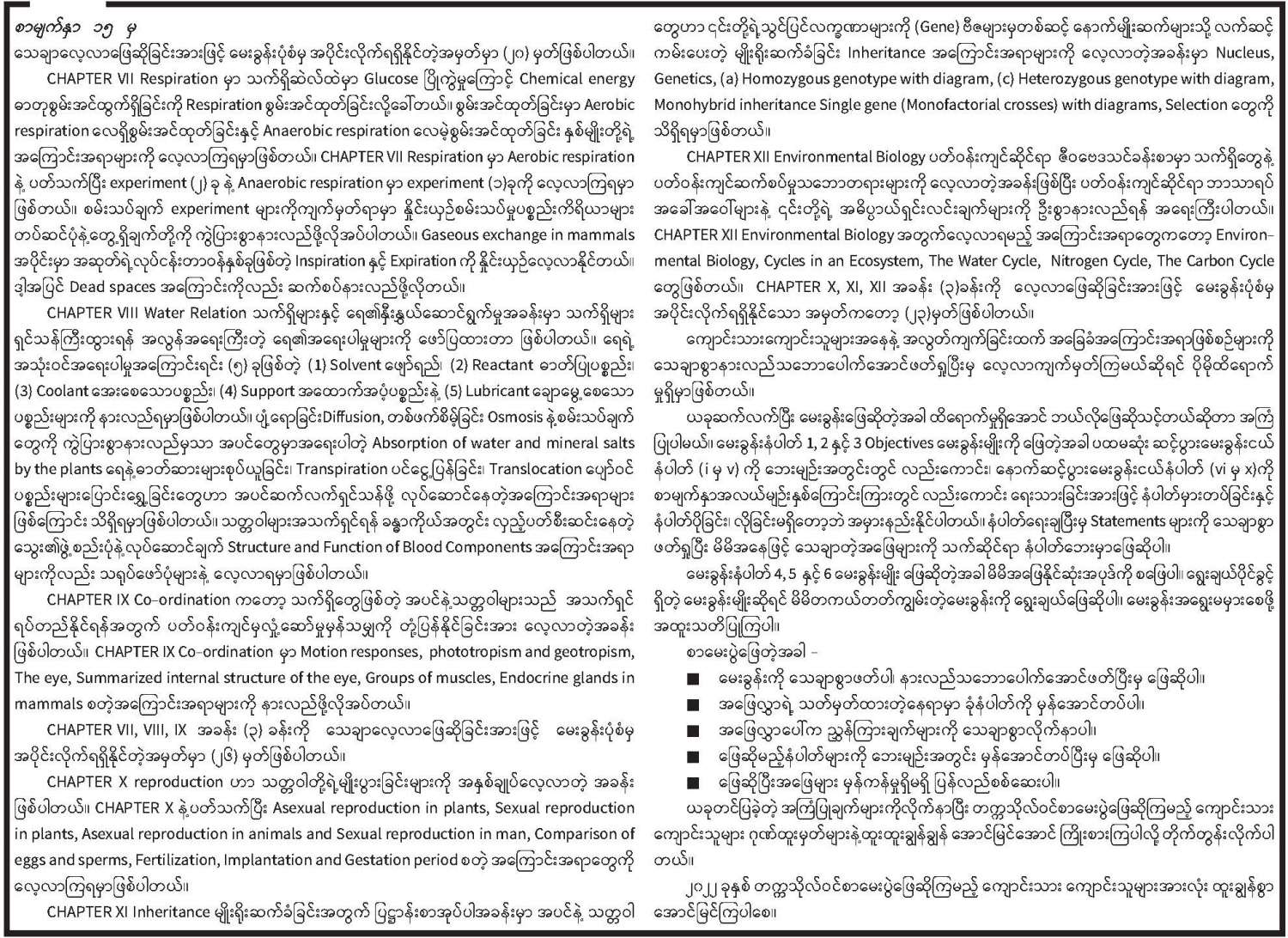 ၂၀၂၀ ခုနှစ် တက္ကသိုလ်စာမေးပွဲအထောက်ကူပြု ဇီဝဘာသာရပ်ဆိုင်ရာ သိကောင်းစရာများ