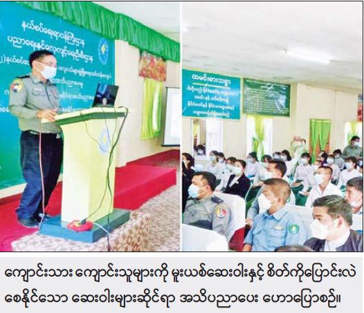 အဆိုပါ အသိပညာပေးဟောပြောပွဲများ၌ မူးယစ်ဆေးဝါးနှင့် စိတ်ကိုပြောင်းလဲစေနိုင်သော ဆေးဝါးများဆိုင်ရာ အသိပညာပေး ဟောပြောမှုကို ကချင်ပြည်နယ် အမှတ်(၂) မူးယစ်တပ်ဖွဲ့စု ဒုတိယရဲမှူး သန်းဝင်းက လည်းကောင်း၊ လူကုန်ကူးမှုဆိုင်ရာ အသိပညာပေး ဟောပြောမှုကို ကချင်ပြည်နယ် လူကုန်ကူးမှုတားဆီးနှိမ်နင်းရေး ရဲတပ်ဖွဲ့စု ဒုတိယရဲမှူး လှိုင်စိုး က လည်းကောင်း၊ ဥပဒေရေးရာ အသိပညာပေးဟောပြောမှု ဆက်သွယ်ရေးဥပဒေနှင့် အီလက်ထရွန်နစ် ဆက်သွယ်ဆောင်ရွက်ရေးဥပဒေကို မြစ်ကြီးနားမြို့နယ် ဒုတိယဥပဒေ အရာရှိ ဦးအောင်ပွားထွန်း က လည်းကောင်း၊ သတင်းအမှား၊ အမှန် ခွဲခြားသုံးသပ်နိုင်ရေး အသိပညာပေးဟောပြောမှုကို ခရိုင်ပြန်ကြားရေးနှင့် ပြည်သူ့ဆက်ဆံရေးဦးစီးဌာနမှ ဦးစီးအရာရှိ ဦးကျော်ထက် က လည်းကောင်း ဟောပြောသည်။