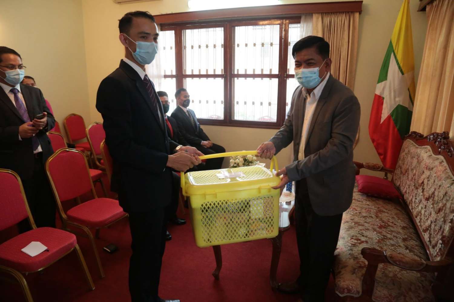 ထို့နောက် သံရုံး၊ စစ်သံရုံး မိသားစုများ၊သင်တန်းသားများအတွက်နိုင်ငံတော် စီမံအုပ်ချုပ်ရေးကောင်စီ ဥက္ကဋ္ဌ တပ်မတော်ကာကွယ်ရေးဦးစီးချုပ် ဗိုလ်ချုပ်မှူးကြီး မင်းအောင်လှိုင်က ပေးအပ်လိုက်သည့် စားသောက်ဖွယ်ရာများနှင့် လက်ဆောင်ပစ္စည်းများကို ညှိနှိုင်းကွပ်ကဲရေးမှူး (ကြည်း၊ရေ၊လေ) ဗိုလ်ချုပ်ကြီး မောင်မောင်အေးက ပေးအပ်ရာ သံအမတ်ကြီး၊ စစ်သံမှူးနှင့် မိသားစုဝင်များ၊ သင်တန်းသားများက လက်ခံရယူခဲ့ကြ ကြောင်းသတင်းရရှိသည်။