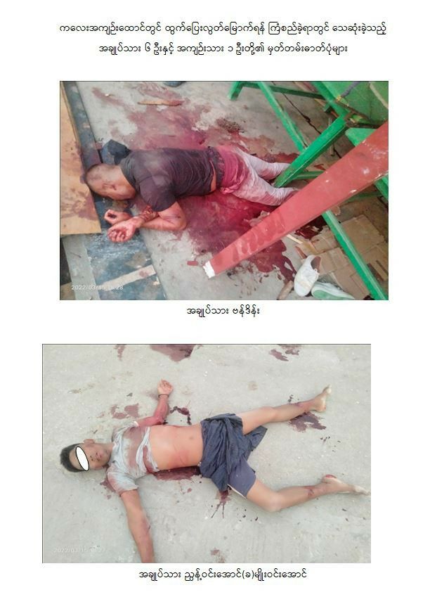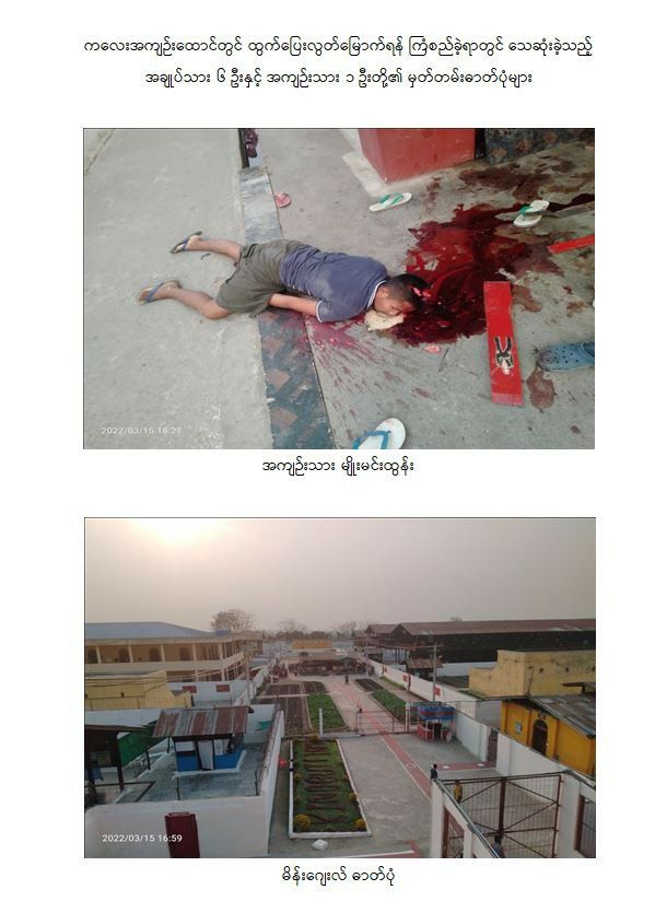 ဓားစာခံအဖြစ်ထိန်းသိမ်းခံရစဉ် ဒုကြီးကြပ်ရေးမှူး၏ ဝဲဘက်လည်ပင်းနှင့် မေးရိုးတို့၌ ပြတ်ရှဒဏ်ရာ ၁ ချက်စီ(မစိုးရိမ်ရ)ရရှိသွားသဖြင့် ကလေးပြည်သူ့ဆေးရုံကြီးသို့ ပို့ဆောင် ကုသ ပေးလျက်ရှိပြီး အကျဉ်းထောင်၌ ပုံမှန်လုပ်ငန်းများကို ဆက်လက်လုပ် ကိုင်ဆောင်ရွက် လျက်ရှိကြောင်း သတင်းရရှိသည်။
