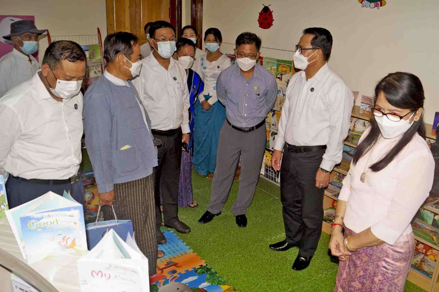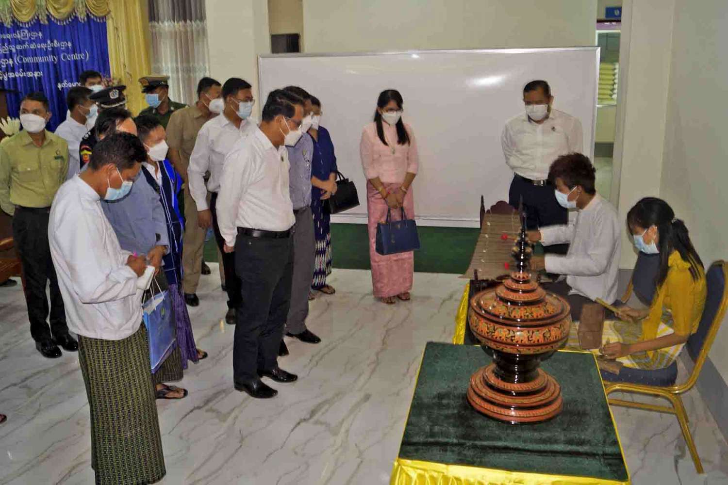 ယင်းနောက် ပြည်ထောင်စုဝန်ကြီး ဦးမောင်မောင်အုန်းနှင့် တက်ရောက်လာကြသူများက လူထုအခြေပြုဗဟိုဌာန အဆောက်အအုံအတွင်း ပြသထားရှိသော ဘက်စုံသုံးခန်းမ၊ အနုပညာ ခန်း၊ ပြတိုက်ငယ်၊ ပြည်သူ့စာကြည့်တိုက်၊ ကလေးစာဖတ်ခန်း၊ အားကစားခန်းမ၊ ကွန်ပျူတာ သင်တန်းခန်းမ၊ အစည်းအဝေးခန်းမနှင့် ကလေးကစားခန်းတို့ကို လှည့်လည်ကြည့်ရှု အားပေးပြီး ကလေးစာဖတ်ခန်းအတွင်း ဝင်ရောက်လေ့လာ ဖတ်ရှုနေသည့် ကလေးငယ်များ အား အမှတ်တရ အရုပ်ပစ္စည်းများ ပေးအပ်သည်။