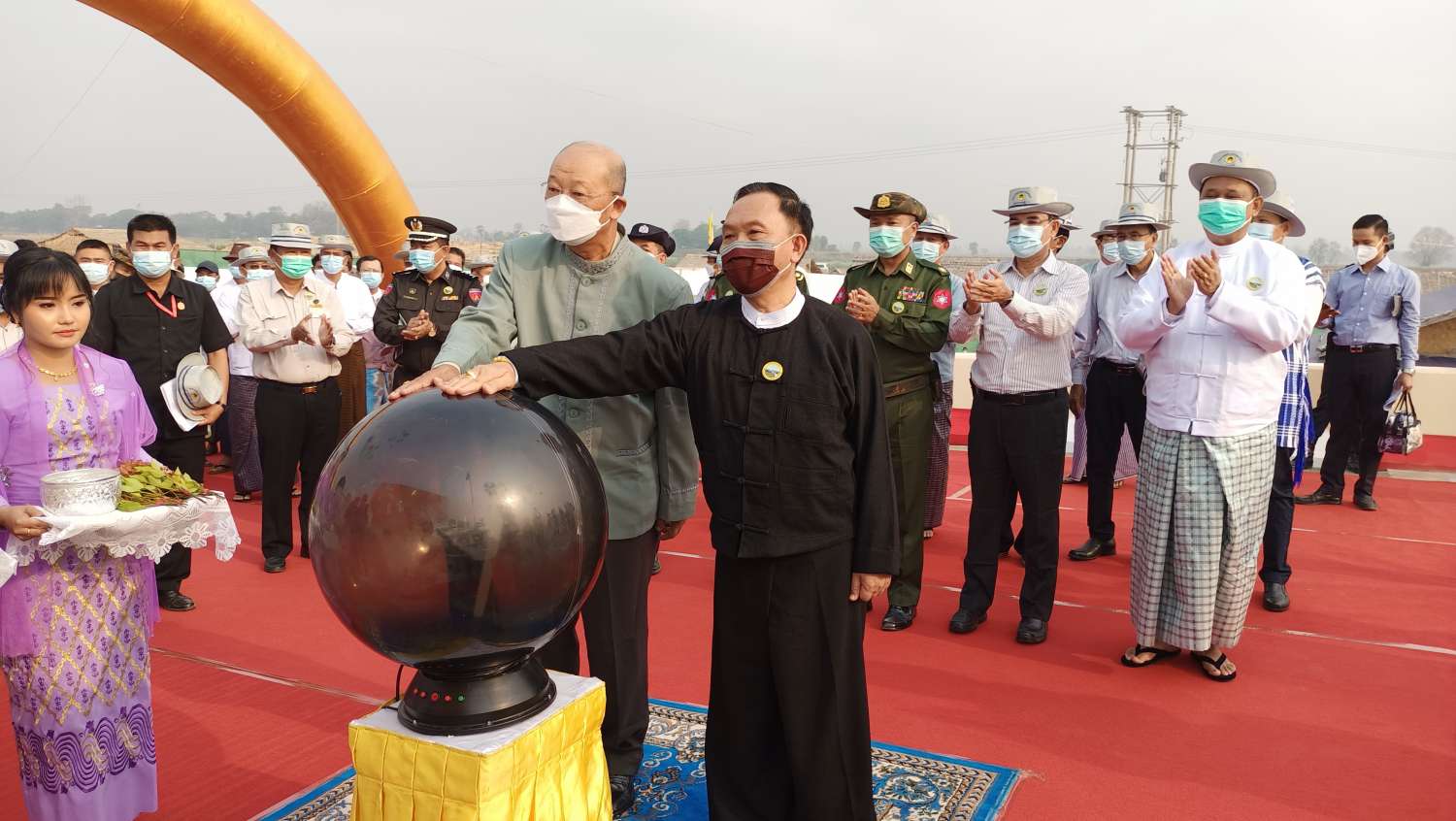အခမ်းအနားသို့ နိုင်ငံတော်စီမံအုပ်ချုပ်ရေးကောင်စီဝင်၊ Jeng Phang နော်တောင်၊ ဦးရွှေကြိမ်း၊ ဆောက်လုပ်ရေးဝန်ကြီးဌာန ပြည်ထောင်စုဝန်ကြီး ဦးရွှေလေး၊ ပဲခူးတိုင်းဒေသကြီး ဝန်ကြီးချုပ် ဦးမျိုးဆွေဝင်း၊ တောင်ပိုင်းတိုင်းစစ်ဌာနချုပ် တိုင်းမှူး ဗိုလ်မှူးချုပ် ထိန်ဝင်း၊ ပဲခူးတိုင်းဒေသကြီး အစိုးရအဖွဲ့ဝင် ဝန်ကြီးများ၊ စစ်ဘက်၊ နယ်ဘက်မှ ပုဂ္ဂိုလ်များ၊ တိုင်း / ခရိုင် / မြို့နယ်အဆင့် ဌာနဆိုင်ရာတာဝန်ရှိသူများ၊ လူမှုရေးအသင်းအဖွဲ့များမှ ပုဂ္ဂိုလ်များ၊ ရပ်မိ / ရပ်ဖများ၊ ဒေသခံပြည်သူများ၊ ဖိတ်ကြားထားသည့် ဧည့်သည်များ တက်ရောက်ကြသည်။