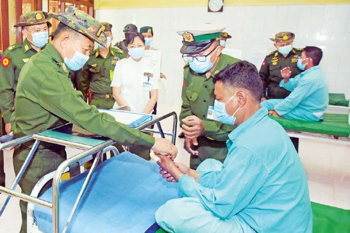 ထို့နောက် နိုင်ငံတော်စီမံအုပ်ချုပ်ရေးကောင်စီဒုတိယဥက္ကဋ္ဌ ဒုတိယတပ်မတော် ကာကွယ်ရေးဦးစီးချုပ် ကာကွယ်ရေးဦးစီးချုပ်(ကြည်း)သည် ဆေးရုံတွင်တာဝန်ထမ်း ဆောင်လျက်ရှိသည့် ကျန်းမာရေး ဝန်ထမ်းများအတွက် ချီးမြှင့်ငွေများကို ပေးအပ်ရာ ဆေးရုံတပ်မှူးက လက်ခံရယူခဲ့ကြောင်း သတင်းရရှိသည်။