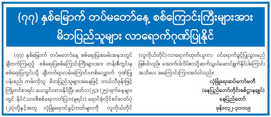 ဝန်ကြီးဌာန ကြေညာချက်များ