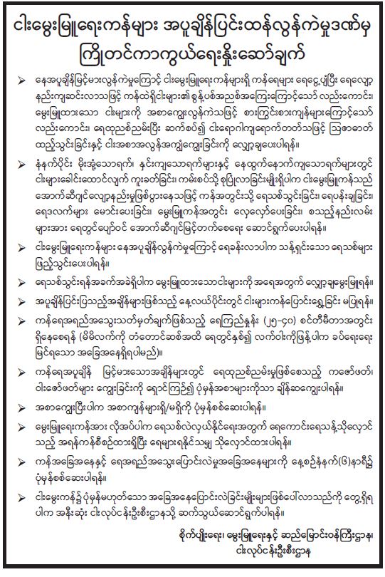 ဦးစီးဌာနနှင့် လုပ်ငန်းများ၏ ကြေညာချက်များ