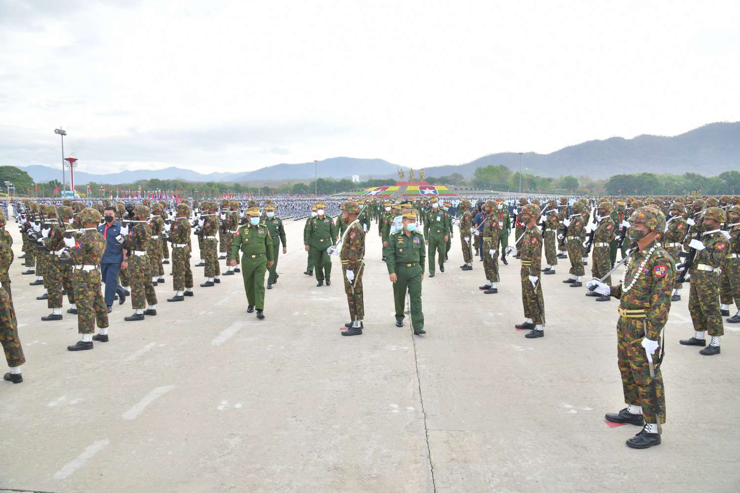 ၂၀၂၂ ခုနှစ်၊ မတ်လ ၂၇ ရက်နေ့တွင် ကျရောက်သော(၇၇)နှစ်မြောက် တပ်မတော်နေ့ စစ်ရေးပြအခမ်းအနားတွင် ပါဝင်ချီတက်စစ်ရေးပြကြမည့် စစ်ရေးပြ စစ်ကြောင်းကြီးများသည် ယနေ့နံနက်ပိုင်းတွင် နေပြည်တော်စစ်ရေးပြကွင်း၌ ဝတ်စုံပြည့်စစ်ရေးပြလေ့ကျင့်မှုများ ဆောင်ရွက်ကြသည်။
