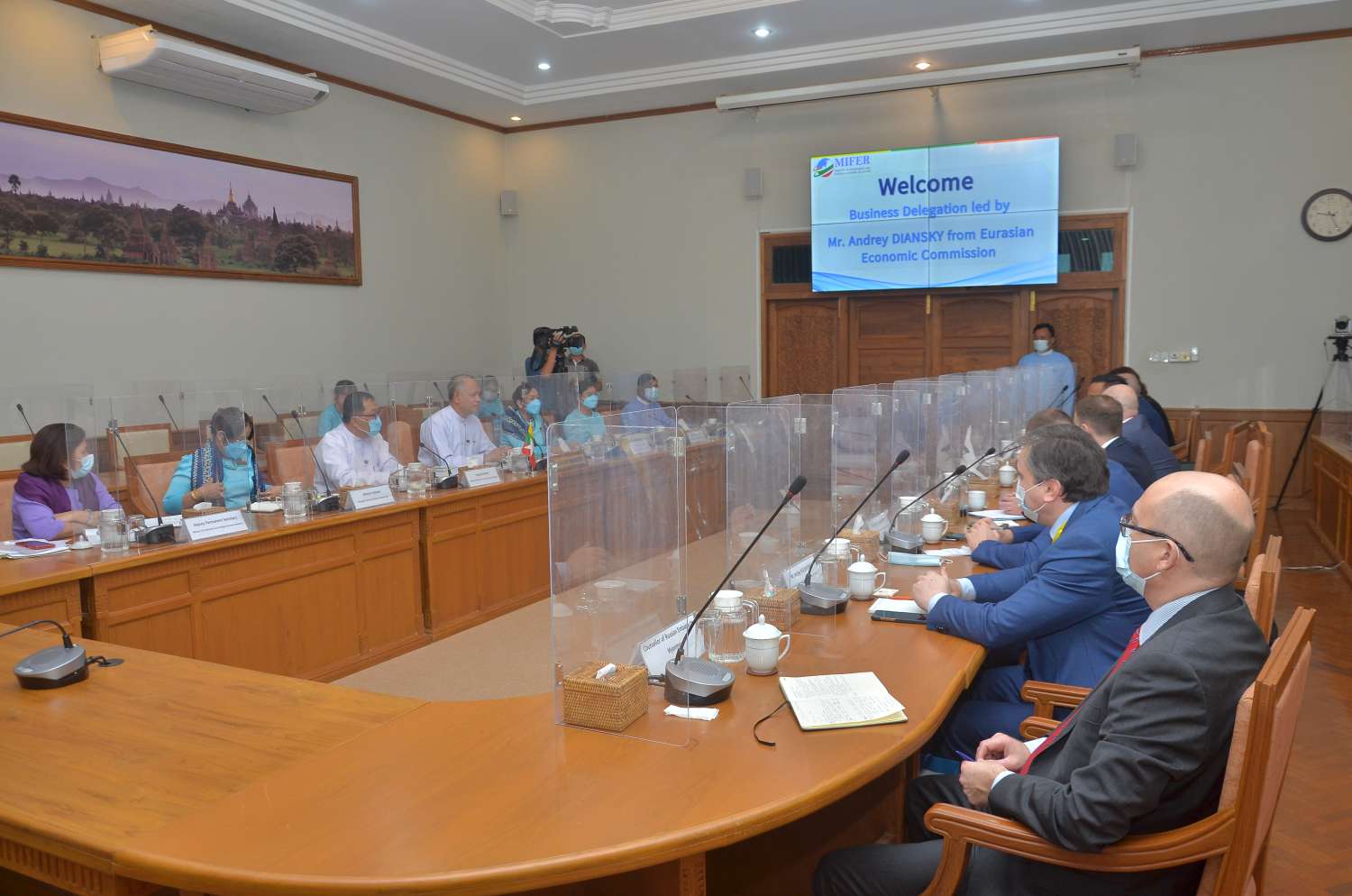 ထို့နောက် ဥရောပအာရှ စီးပွားရေးကော်မရှင်(EEC) မှ တာဝန်ရှိသူများနှင့် စီးပွားရေး ကိုယ်စား လှယ်အဖွဲ့ဝင်များက ဦးစားပေးပူးပေါင်းဆောင်ရွက်လိုသည့် စီးပွားရေး ကဏ္ဍများနှင့် လုပ်ငန်း စီမံကိန်းများ၊ မြန်မာနိုင်ငံနှင့် EEC အကြား အနာဂတ်တွင် ဆက်လက်ပူးပေါင်း ဆောင်ရွက် သွားမည့်အစီအစဉ်များအား ဆွေးနွေးခဲ့ကြသည်။ ဥရောပ အာရှ စီးပွားရေး ကော်မရှင် (EEC) သည် ရုရှားဖက်ဒရေးရှင်းနိုင်ငံ၊ ဘယ်လာရုစ် နိုင်ငံ၊ အာမေးနီးယားနိုင်ငံ၊ ကာဇက်စတန်နိုင်ငံနှင့် ကာဂျစ်စတန်နိုင်ငံ ၅ နိုင်ငံဖြင့် ဖွဲ့စည်း ထားသည့် ဥရောပအာရှစီးပွားရေး သမဂ္ဂ(EAEU)၏ ဦးဆောင် အဖွဲ့အစည်းဖြစ်ပြီး အကောက်ခွန်သမဂ္ဂပုံစံဖြင့် စီးပွားရေး ပူးပေါင်းဆောင်ရွက်မှု များကို ဆောင်ရွက်လျက် ရှိသည်။ ဥရောပအာရှစီးပွားရေးသမဂ္ဂ (EAEU) သည် အာဆီယံနှင့် လည်း စီးပွားရေး ပူးပေါင်းဆောင်ရွက်မှုများ လုပ်ဆောင်လျက်ရှိကြောင်း သိရသည်။