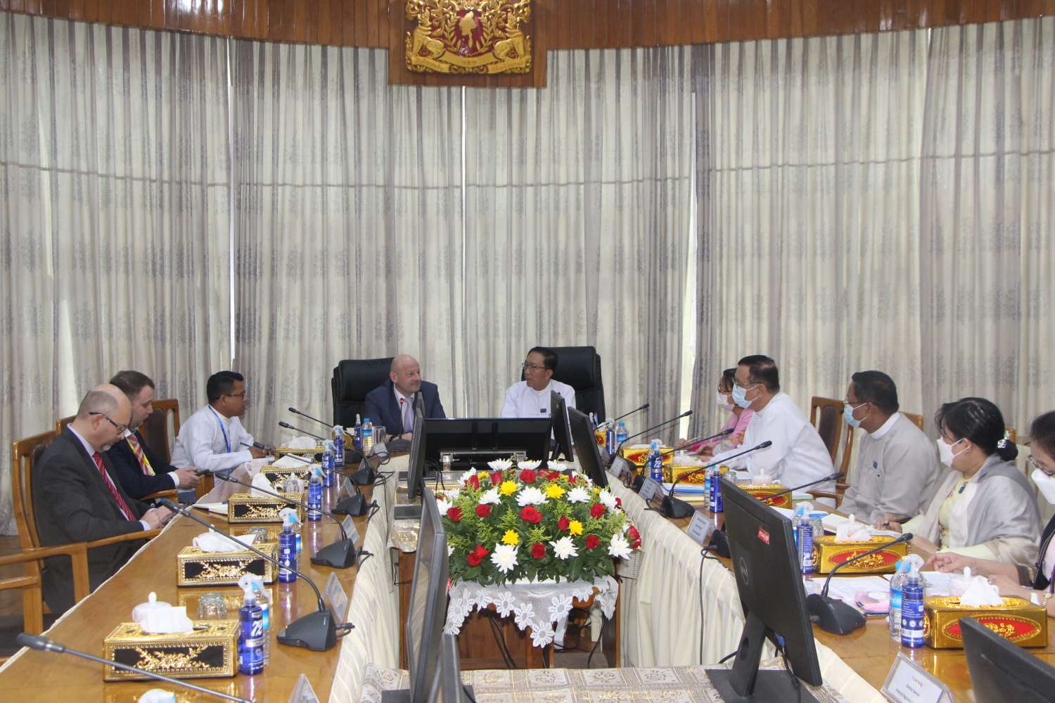 စီမံကိန်းနှင့် ဘဏ္ဍာရေးဝန်ကြီးဌာန၊ ပြည်ထောင်စုဝန်ကြီး ဦးဝင်းရှိန်သည် ယနေ့နံနက် ၁၀ နာရီတွင် ဥရောပအာရှ စီးပွားရေးကော်မရှင်၊ အကြီးစားစီးပွားရေးလုပ်ငန်းပူးပေါင်းဆောင်ရွက်ရေး အတွင်းရေးမှူးချုပ်ရုံးမှ အကြီးအကဲ Mr. Andrey DIANSKY ဦးဆောင်သည့် ကိုယ်စားလှယ်အဖွဲ့အား နေပြည်တော်ရှိ စီမံကိန်းနှင့် ဘဏ္ဍာရေးဝန်ကြီးဌာန၊ ပြည်ထောင်စုဝန်ကြီးရုံး၊ အစည်းအဝေးခန်းမ၌ လက်ခံတွေ့ဆုံသည်။