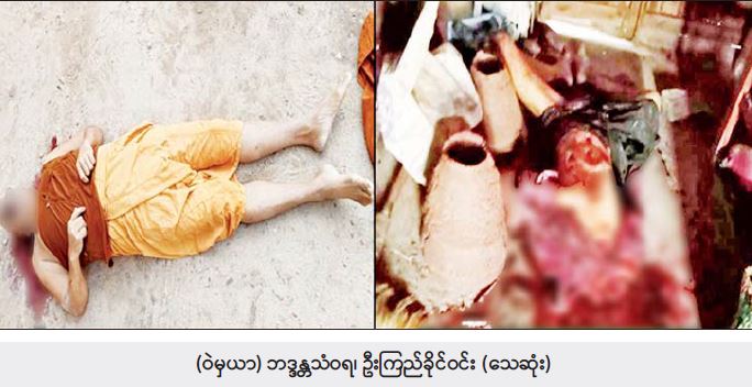 ထိုသို့ သွားရောက်စစ်ဆေးခဲ့ရာ PDF အမည်ခံအကြမ်းဖက်အဖွဲ့ အင်အား ၁၅ ဦးခန့်သည် ဆိုင်ကယ်ခုနစ်စီးဖြင့်သေနတ်၊ ဓားများကိုင်ဆောင်၍ အဆိုပါကျေးရွာအတွင်းသို့ ဝင်ရောက်လာပြီး ကျေးရွာရှိ “မဟာဝိသုတရာမပညာဒီပကျောင်း”မှ ကျောင်းထိုင်ဆရာတော် ဘဒ္ဒန္တသံဝရ(၅၇)နှစ်၊ (၂၂) ဝါ၊ (ဘ) ဦးအောင်ထူးနှင့် ဘုန်းတော်ကြီးကျောင်းတွင် ရောက်ရှိနေသည့် ဦးကြည်ခိုင်ဝင်း (၄၇)နှစ် (ဘ) ဦးဝင်းမောင်တို့ကို သေနတ်၊ ဓားများဖြင့် ရက်စက်စွာ ဝိုင်းဝန်းပစ်ခတ်ထိုးခုတ် သတ်ဖြတ်၍ ဘုန်းတော်ကြီးကျောင်းရှိ RLG/7613 Noah မော်တော်ယာဉ်အား လုယက်ယူဆောင်ကာ မြိုင်မြို့ဘက်သို့ မောင်းနှင်ထွက်ပြေးသွားခဲ့သဖြင့် ဆရာတော် ဘဒ္ဒန္တသံဝရတွင် ယာမျက်လုံး ကျည်ဖောက်ဝင်ဒဏ်ရာ တစ်ချက်၊ ဝမ်းဗိုက် ကျည်ဖောက်ဝင် ဒဏ်ရာတစ်ချက်နှင့် ဦးကြည်ခိုင်ဝင်းတွင် ရင်ဘတ်ကျည်ဖောက်ဝင်ဒဏ်ရာ သုံးချက်၊ ဦးခေါင်းပြတ်ထွက် ဒဏ်ရာများရရှိကာ အခင်းဖြစ်နေရာ၌ သေဆုံးနေသည်ကို တွေ့ရှိရပြီး ၎င်းတို့အနီးမှ Thai 380 Auto ကျည်ခွံ သုံးခု၊ ၁၂ တို့ ကျည်ခွံသုံးခုနှင့် ဓားရှည်တစ်ချောင်းတို့အား တွေ့ရှိသိမ်းဆည်းရမိခဲ့ကြောင်း သိရသည်။