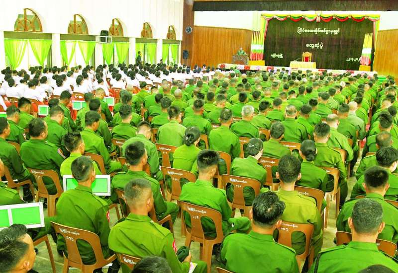 ပြည်ထောင်စုအစိုးရအဖွဲ့ အစည်းအဝေး ကို ယနေ့နံနက်ပိုင်းတွင် (၂၀၂၂/၂) နေပြည်တော်ရှိ နိုင်ငံတော်စီမံအုပ်ချုပ်ရေးကောင်စီဥက္ကဋ္ဌရုံး အစည်းအဝေးခန်းမ၌ ကျင်းပရာ နိုင်ငံတော်စီမံ အုပ်ချုပ်ရေးကောင်စီဥက္ကဋ္ဌ၊ နိုင်ငံတော်ဝန်ကြီးချုပ် ဗိုလ်ချုပ်မှူးကြီးမင်းအောင်လှိုင် တက်ရောက် အမှာစကားပြောကြားသည်။