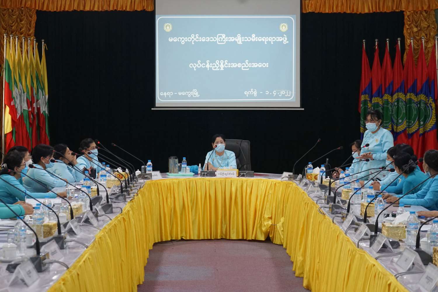 ဆက်လက်၍ တက်ရောက်လာသည့် မကွေးတိုင်းဒေသကြီးအတွင်းရှိ ခရိုင်နှင့် မြို့နယ်များမှ အမျိုးသမီးရေးရာအဖွဲ့ဥကဋ္ဌနှင့် အဖွဲ့ဝင်များက မိမိတို့မြို့နယ်အတွင်း အသိပညာပေး ဟောပြောပွဲ ဆောင်ရွက်မှုအခြေအနေများ၊ Mask Campain များတွင် ပူးပေါင်းဆောင်ရွက်မှု အခြေအနေများနှင့် အသက်မွေးဝမ်းကြောင်းသင်တန်းများ ဆက်လက်ဖွင့်လှစ်ဆောင်ရွက်သွားမည့် အခြေအနေများအား ရှင်းလင်းတင်ပြရာ မကွေးတိုင်းဒေသကြီးအစိုးရအဖွဲ့ ဝန်ကြီးချုပ် ဇနီးဒေါ်ဝင်းဝင်းမြင့်နှင့် အစိုးရအဖွဲ့ ဝန်ကြီးဇနီးများ၊ တိုင်းဒေသကြီးအမျိုးသမီးရေးရာအဖွဲ့ဥက္ကဋ္ဌတို့မှ လိုအပ်သည်များ ပေါင်းစပ်ညှိနှိုင်း ဆောင်ရွက်ပေးခဲ့ကြောင်း သိရသည်။