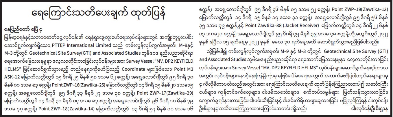 ရေကြောင်းသတိပေးချက် ထုတ်ပြန်