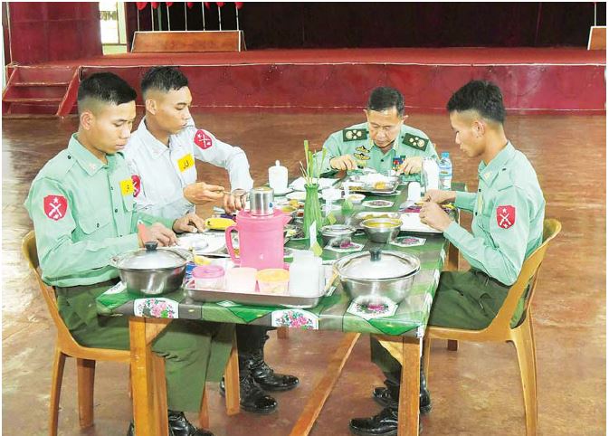 ထို့နောက် နိုင်ငံတော်စီမံအုပ်ချုပ်ရေးကောင်စီဒုတိယဥက္ကဋ္ဌ ဒုတိယတပ်မတော် ကာကွယ်ရေးဦးစီချုပ်၊ ကာကွယ်ရေးဦးစီချုပ်(ကြည်း)နှင့် အဖွဲ့ဝင်များသည် အဆိုပါ သင်တန်းကျောင်းရှိ သင်တန်းသား စုပေါင်းစားရိပ်သာ၌ သင်တန်းသားများနှင့်အတူ နေ့လယ်စာကို အတူတကွ သုံးဆောင်ခဲ့ကြကြောင်း သတင်းရရှိသည်။