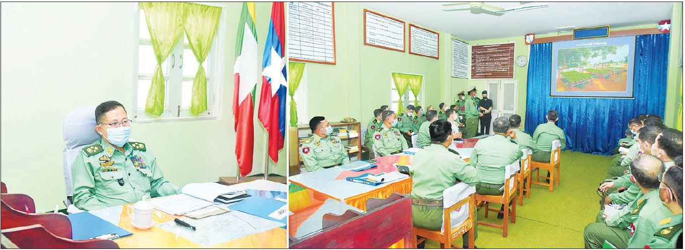 ဦးစွာ နိုင်ငံတော်စီမံအုပ်ချုပ်ရေးကောင်စီ ဒုတိယဥက္ကဋ္ဌ ဒုတိယတပ်မတော် ကာကွယ်ရေးဦးစီးချုပ် ကာကွယ်ရေးဦးစီးချုပ်(ကြည်း)နှင့် အဖွဲ့ဝင်များ သည် တိရစ္ဆာန်မွေးမြူရေးနှင့် လေ့ကျင့်ရေးတပ်ရင်း ရုံးသို့ ရောက်ရှိရာ တပ်ရင်းရုံး၌ တပ်ရင်းမှူးက ရည်မှန်းချက်တာဝန်များအပေါ် အကောင်အထည် ဖော်ဆောင်ရွက်နိုင်မှုနှင့် စံပြစိုက်ပျိုးမွေးမြူရေးဇုန် ဆောင်ရွက်ထားရှိမှု အခြေအနေများကို ရှင်းလင်း တင်ပြရာ နိုင်ငံတော်စီမံအုပ်ချုပ်ရေး ကောင်စီဒုတိယ ဥက္ကဋ္ဌ ဒုတိယတပ်မတော်ကာကွယ်ရေးဦးစီးချုပ် ကာကွယ်ရေးဦးစီးချုပ်(ကြည်း)က သိရှိလိုသည်များ မေးမြန်းပြီး လိုအပ်သည်များ ပေါင်းစပ်ညှိနှိုင်းဆောင် ရွက်ပေးသည်။