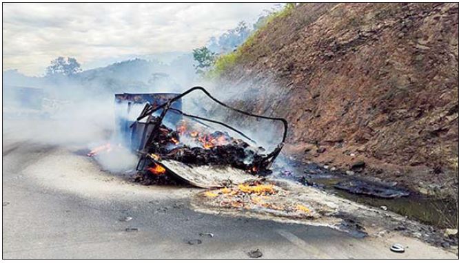 ဖြစ်စဉ်နေရာတစ်ဝိုက်အား ရှာဖွေမှုများ ပြုလုပ်ရာ အဆိုပါနေရာ၌ ၆ ဘီး ယာဉ် ၁ စီး၊ ၁၂ ဘီးယာဉ် ၁ စီး၊ ၂၂ ဘီးယာဉ် ၁ စီး၊ ခရီးသည် တင်မှန်လုံယာဉ် ၁ စီး၊ NISSAN အမျိုးအစား CARAVAN ၁ စီး၊ စုစုပေါင်း မော်တော် ယာဉ် ၅ စီး မီးလောင် ပျက်စီးလျက်ရှိသည်ကို တွေ့ရှိရသည်။