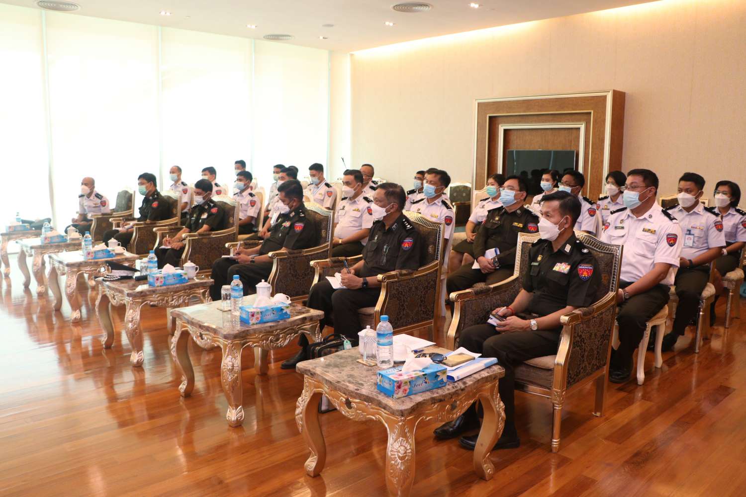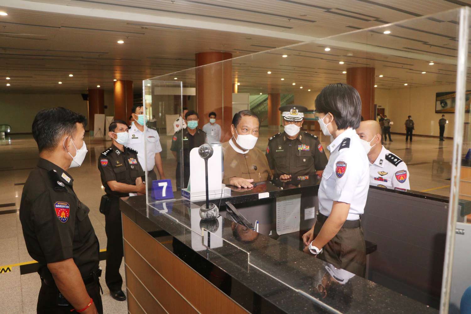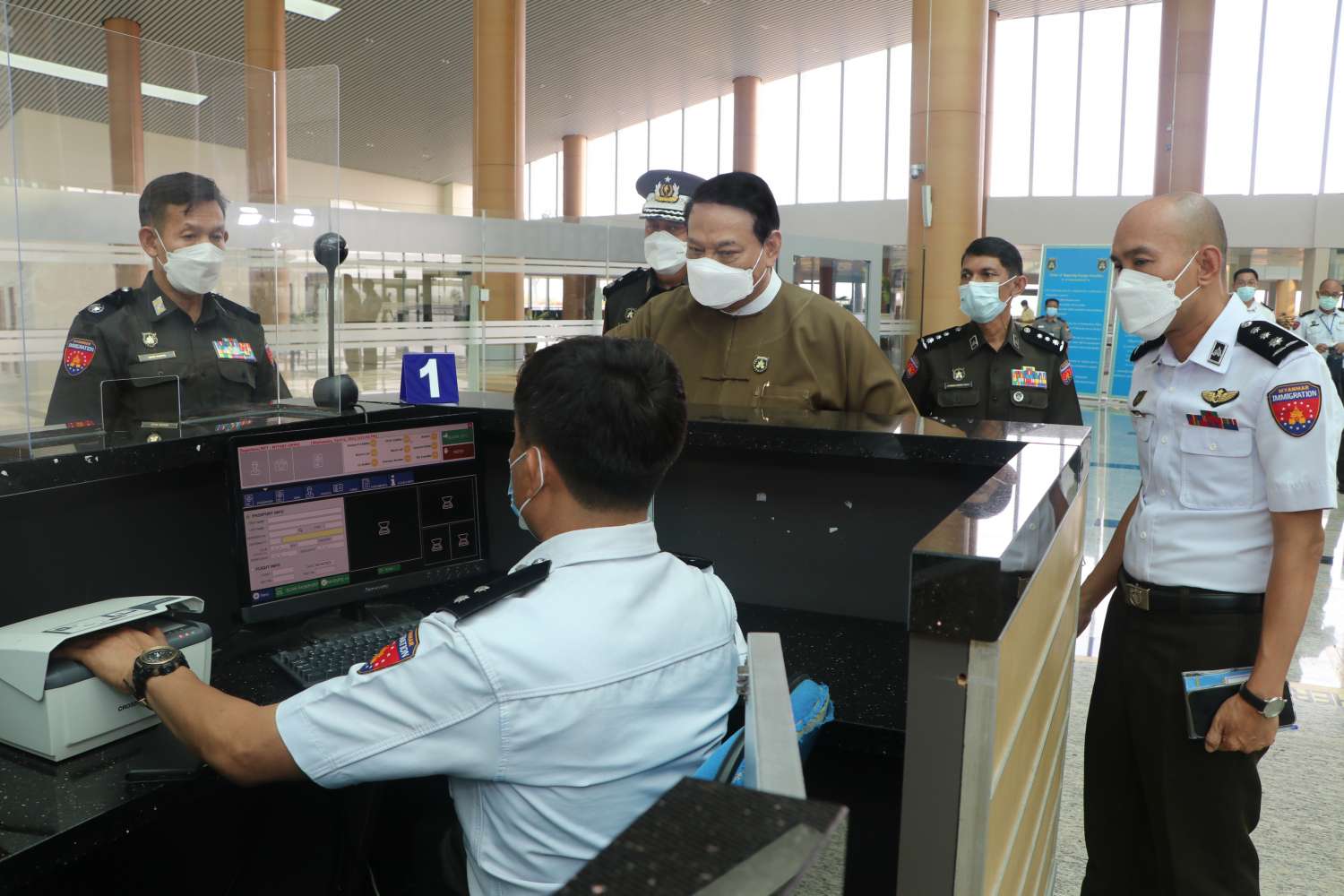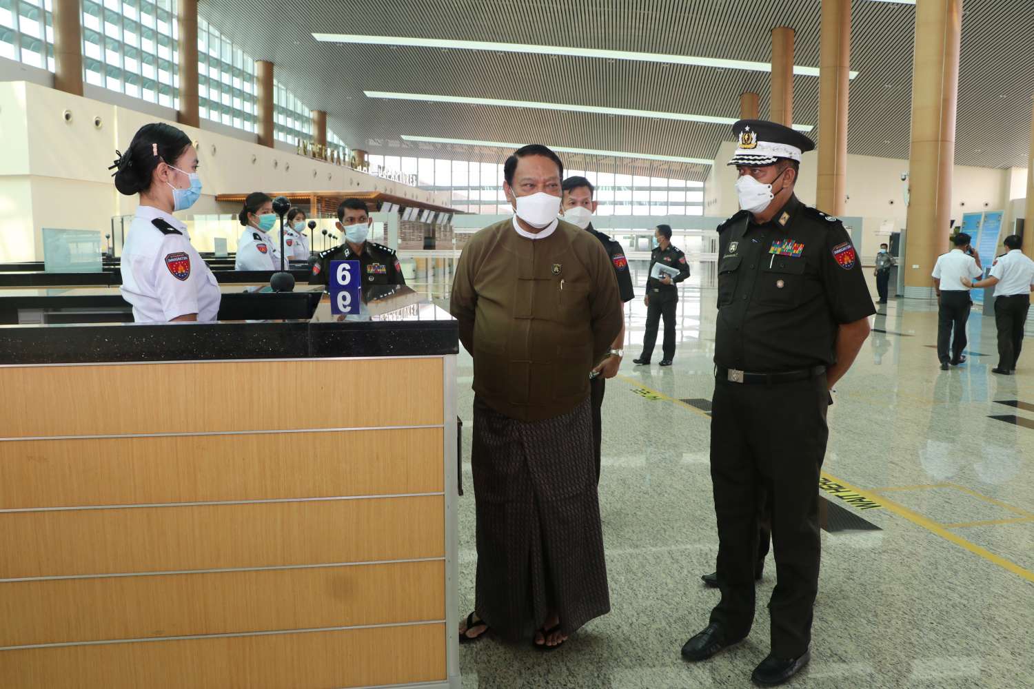 နိုင်ငံခြားသားများ၊ မြန်မာနိုင်ငံသားများ နိုင်ငံအတွင်း ဝင်ရောက်ရာတွင် လွယ်ကူချောမွေ့စေရေးအတွက် နိုင်ငံတကာ လေကြောင်းခရီးစဉ် များကို ယာယီကန့်သတ်ထားရာမှ လာမည့်ဧပြီ (၁၇) ရက်မှစ၍ ပြည်ဝင်ဗီဇာနှင့် ကျန်းမာရေးဆိုင်ရာ ညွှန်ကြားချက်များနှင့်အညီ ပုံမှန်ပြန်လည် ပြေးဆွဲခွင့်ပြုမည်ကို သက်ဆိုင်ရာမှ ထုတ်ပြန်ထားပါကြောင်း၊ မိမိတို့ဌာနအနေဖြင့်လည်း ခွင့်ပြုချက်အရ ဧပြီ (၁) ရက်မှစ၍ e-Visa စနစ်ဖြင့် Business Visa (လုပ်ငန်းဗီဇာ)ကို စတင်လျှောက်ထားခွင့်ပြုကြောင်း ထုတ်ပြန်ကြေညာခဲ့ပြီးဖြစ်ပါကြောင်း၊ ယင်းသို့ ပြည်ပလေကြောင်းခရီးစဉ်များ ပြန်လည်ပြေးဆွဲခွင့်ပြုရာတွင် မိမိတို့ဌာနမှ အပြည်ပြည်ဆိုင်ရာ လေဆိပ်တာဝန်ကျ ဝန်ထမ်းများအနေဖြင့် လိုအပ်သည်များကို ကြိုတင်ပြင်ဆင် ဆောင်ရွက်ထားကြရန် လိုအပ်ပါကြောင်း၊ လူဝင်မှုစစ်ဆေးရေးလုပ်ငန်းများ အဆင်ပြေချောမွေ့စေရေး နှင့် ခရီးသွားများအတွက် ထိရောက်သော ဝန်ဆောင်မှုများပေးနိုင်ရေးအတွက် အဖက်ဖက်က ဖြည့်ဆည်းဆောင်ရွက်ထားကြရမည် ဖြစ်ပါကြောင်း၊ ခရီးသွားများအပေါ် ယဉ်ကျေးပျူငှာစွာ ဆက်ဆံဆောင်ရွက်ကြရန်နှင့် မိမိတို့၏ ဆက်ဆံဆောင်ရွက်မှုသည် နိုင်ငံ၏ ပြယုဒ်ဖြစ်သည်ကို အလေးဂရုပြုကြစေလိုကြောင်း၊ အခြားသော ဆက်စပ်ဌာနအဖွဲ့အစည်းများနှင့်လည်း ညှိနှိုင်းပေါင်းစပ်ဆောင်ရွက်ကြရန် နှင့် လုပ်ငန်းလိုအပ်ချက်များကို အချိန်မီ တင်ပြဆောင်ရွက်ကြရန်ဖြစ်ပါကြောင်း မှာကြားသည်။