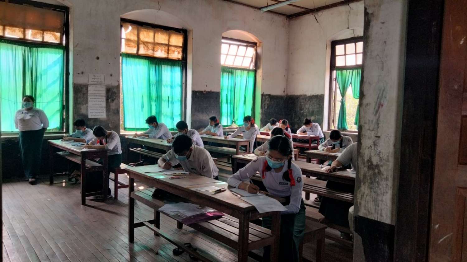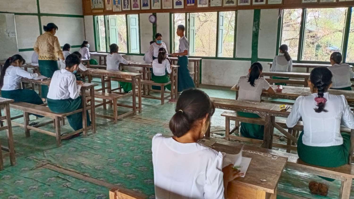 စာမေးပွဲဖြေဆိုခြင်းမပြုမီ ကိုဗစ်-၁၉ ရောဂါဆိုင်ရာ စည်းမျဉ်း/စည်းကမ်းများနှင့်အညီ Mask များ တပ်ဆင်လာစေခြင်း၊ အပူချိန်တိုင်းတာခြင်း၊ စာမေးပွဲဖြေဆိုခွင့်ကတ်များ မှန်/မမှန် စစ်ဆေးခြင်းများကို ဆရာ၊ ဆရာမများက စနစ်တကျစစ်ဆေးခြင်းများကို ဆောင်ရွက်ကြသည်။ ယင်းသို့ ကျောင်းသား၊ ကျောင်းသူများ စိတ်အေးချမ်းသာစွာ ဖြေဆိုနိုင်ရေးအတွက် ကျောင်းဝင်းအတွင်းနှင့် အပြင်များ၌ သက်ဆိုင်ရာ လုံခြုံရေးအဖွဲ့ဝင်များ၊ ကျန်းမာရေးဝန်ထမ်းများ၊ မီးသတ်တပ်ဖွဲ့ဝင်များနှင့် ရပ်ကွက်၊ ကျေးရွာအုပ်ချုပ်ရေး အဖွဲ့ဝင်များက စနစ်တကျ စောင့်ကြပ်ကြည့်ရှုပေးလျက်ရှိသည်။