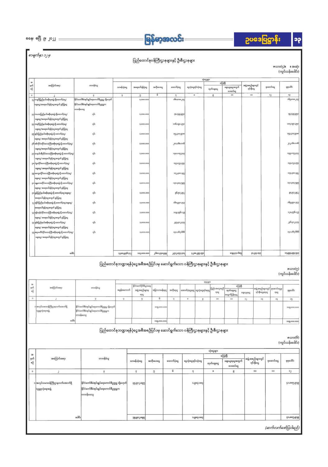 ဦးစီးဌာနနှင့် လုပ်ငန်းများ၏ ကြေညာချက်များ