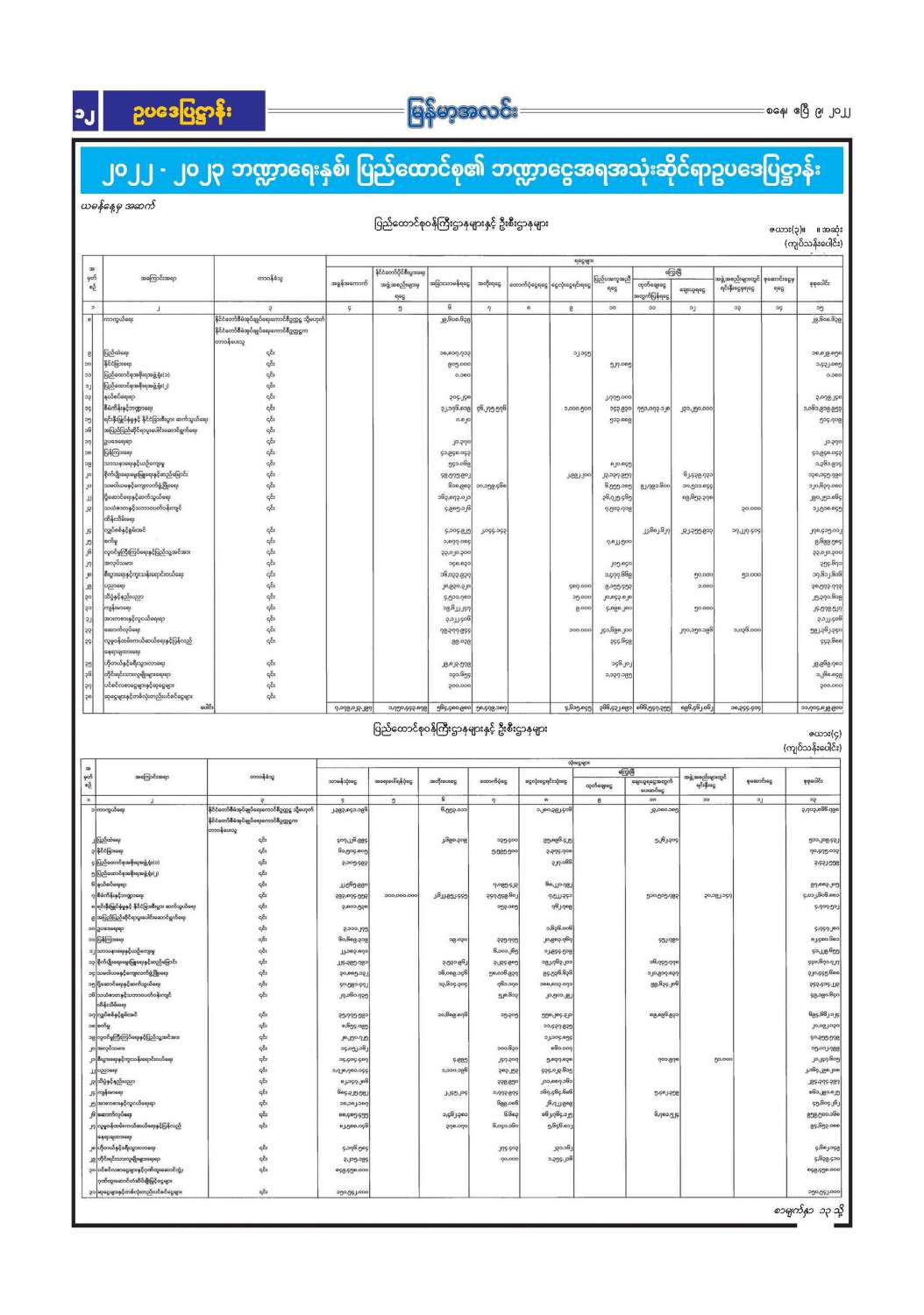 ၂၀၂၂ - ၂၀၂၃ ဘဏ္ဍာရေးနှစ်၊ ပြည်ထောင်စု၏ ဘဏ္ဍာငွေအရအသုံးဆိုင်ရာဥပဒေပြဋ္ဌာန်း