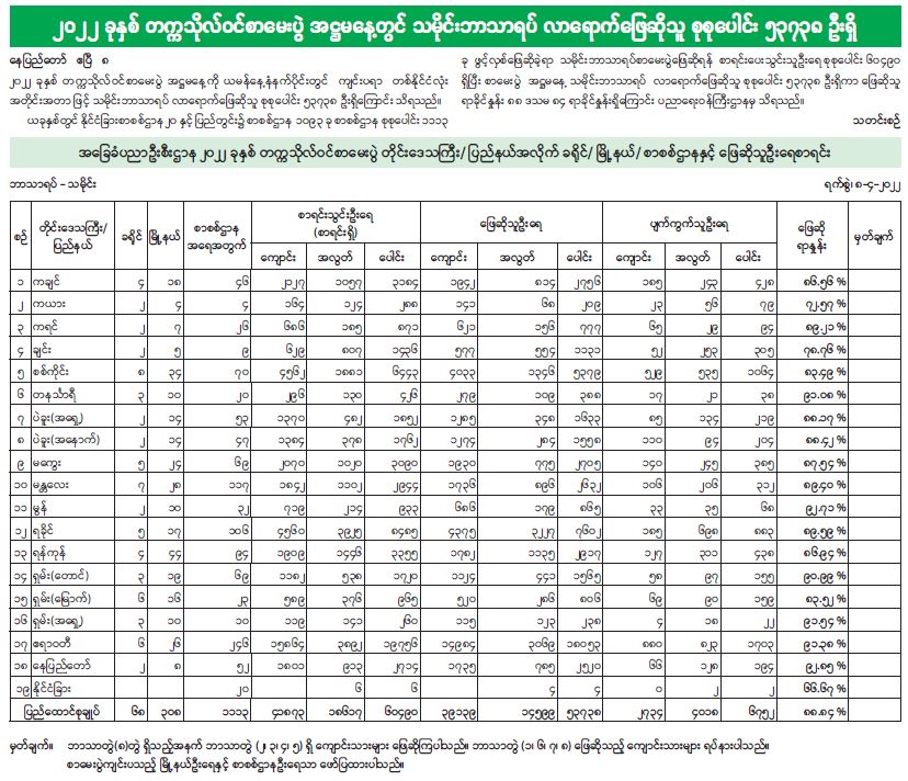 ၂၀၂၂ ခုနှစ် တက္ကသိုလ်ဝင်စာမေးပွဲ အဋ္ဌမနေ့တွင် သမိုင်းဘာသာရပ် လာရောက်ဖြေဆိုသူ စုစုပေါင်း ၅၃၇၃၈ ဦးရှိ 04/09/2022