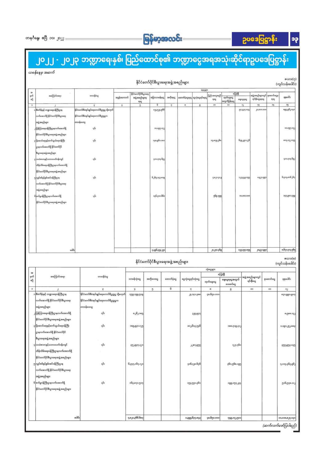 ၂၀၂၂ - ၂၀၂၃ ဘဏ္ဍာရေးနှစ်၊ ပြည်ထောင်စု၏ ဘဏ္ဍာငွေအရအသုံးဆိုင်ရာဥပဒေပြဋ္ဌာန်း
