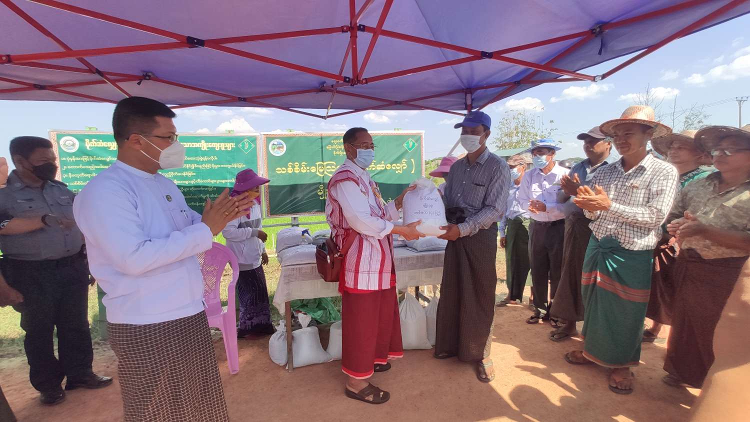 ယင်းနောက် နိုင်ငံတော်ကောင်စီဝင် ဖဒိုမန်းငြိမ်းမောင်၊ ဧရာဝတီတိုင်းဒေသကြီးဝန်ကြီးချုပ် ဦးတင်မောင်ဝင်း၊ တိုင်းဒေသကြီးစိုက်ပျိုးရေးဦးစီးမှူး ဦးစိန်မောင်မြင့်နှင့် တိုင်း /ခရိုင်/မြို့နယ်မှ တာဝန်ရှိသူများက ဝါးခယ်မမြို့နယ် သဲကုန်းကျေးရွာအုပ်စု ကွင်းအမှတ်(၁၀၀၃)၊ ဦးပိုင်အမှတ် (၁၇/၂) တောင်သူ ဦးအောင်နိုင်ထွန်း၏ လယ်မြေအတွင်း (၃)သီးစိုက် (လုပ်ကွက်ငယ်)၊ တောင်သူများ (၁) ဧကဝင်ငွေတိုး ရက် (၉၀) စပါးမျိုး (၆)ဧက စံပြစိုက်ခင်းတွင် နေရောင်ခြည်သုံး ဆိုလာစနစ်ဖြင့် ရေတင်ခြင်း၊ မြေဆီလွှာ ဖွံ့ဖြိုးရေးအတွက် သစ်စိမ်းမြေဩဇာ (ပိုက်ဆံလျှော်မျိုးစေ့) များအား တောင်သူများလက်ဝယ်အရောက်ပေးအပ်၍ စုပေါင်းကြဲပက်ခြင်းလုပ်ငန်းများ ဆောင်ရွက်ခဲ့ကြကြောင်း သိရသည်။