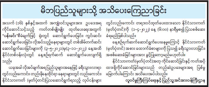 မိဘပြည်သူများသို့ အသိပေးကြေညာခြင်း