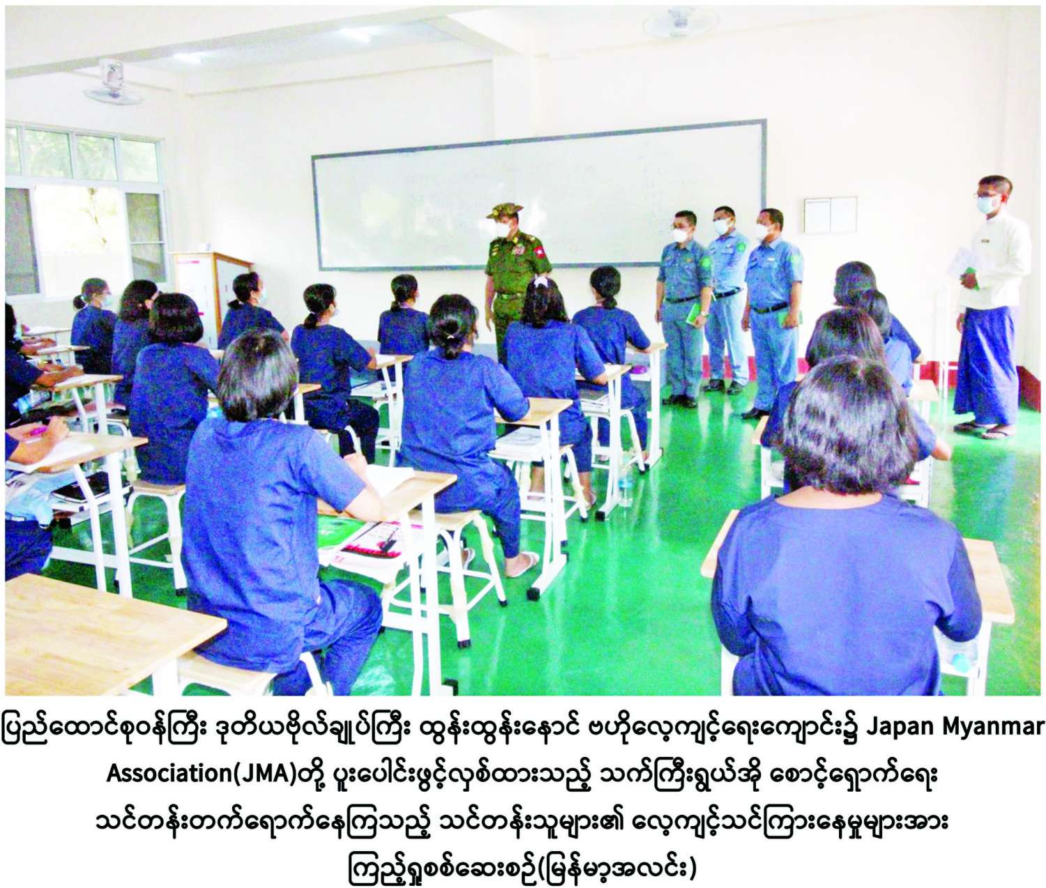 ထို့နောက် ပြည်ထောင်စုဝန်ကြီးသည် နယ်စပ် ရေးရာဝန်ကြီးဌာန ပညာရေးနှင့် လေ့ကျင့်ရေးဦးစီးဌာနနှင့် JapanMyanmarAssociation (JMA) တို့ ပူးပေါင်းဖွင့်လှစ်ထားသည့် သက်ကြီးရွယ်အို စောင့်ရှောက်ရေး သင်တန်းတက်ရောက်နေကြသည့်သင်တန်းသူများ၏လေ့ကျင့်သင်ကြားနေမှုနှင့် ထပ်မံဖွင့်လှစ်မည့် သင်တန်းများအတွက် ကြိုတင်ပြင်ဆင်ထားရှိမှုအခြေအနေ၊ ကျောင်းဝင်းအတွင်းရှိ စားရိပ်သာများ၊ အိပ်ဆောင်များ၊ ဝန်ထမ်းအိမ်ရာ မြေလွတ်နေရာတွင် ဆောင်ရွက်လျက်ရှိသည့်Green Houseများနှင့် ငါးကန်များတွင် ငါးမွေးမြူထားရှိမှုများကို လှည့်လည်ကြည့်ရှုစစ်ဆေးသည်။