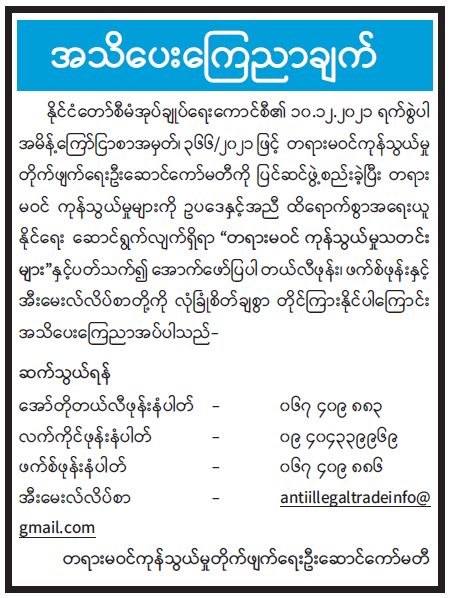ဝန်ကြီးဌာန ကြေညာချက်များ