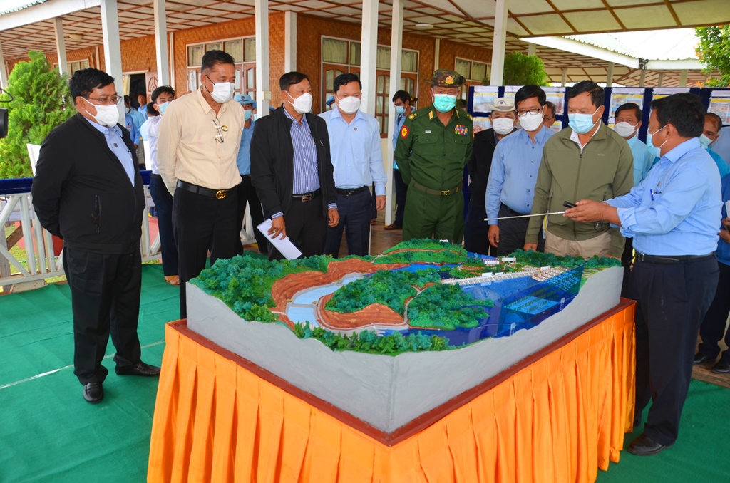 ထို့နောက် ပြည်ထောင်စုဝန်ကြီးနှင့်အဖွဲ့သည် စီမံကိန်းလုပ်ငန်းခွင်အတွင်း ပင်မတမံ တည်ဆောက်ပြီး စီးနေမှု၊ ပင်မရေပိုလွှဲလုပ်ငန်းတည်ဆောက်မှု၊ ရေယူအဆောက်အအုံ ကျောက်သားနံရံခိုင်ခန့်မှုလုပ်ငန်း ဆောင်ရွက်ပြီးစီးမှု၊ ရေထိန်းတံခါးပြွန် တည်ဆောက်ပြီးစီးနေမှု၊ ရေသွယ်ဥမင်လိုဏ်၊ ရေထိန်းတံခါးပြွန်နှင့် ဖိအားမြင့်သံမဏိပိုက်လိုင်း Structure ကွန်ကရစ်လုပ်ငန်းများ ဆောင်ရွက်ပြီးစီးနေမှုနှင့် ဓာတ်အားပေးစက်ရုံ တည်ဆောက်ခြင်းလုပ်ငန်း ဆောင်ရွက်ပြီးစီးမှုကို လှည့်လည်ကြည့်ရှုစစ်ဆေး သည်။