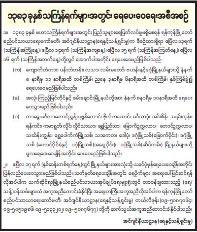 ၁၃၈၃ ခုနှစ် သင်္ကြန်ရက်များအတွင်း ရေပေးဝေရေးအစီအစဉ် 04/12/2022 ၁၃၈၃ ခုနှစ် သင်္ကြန်ရက်များအတွင်း ရေပေးဝေရေးအစီအစဉ်
