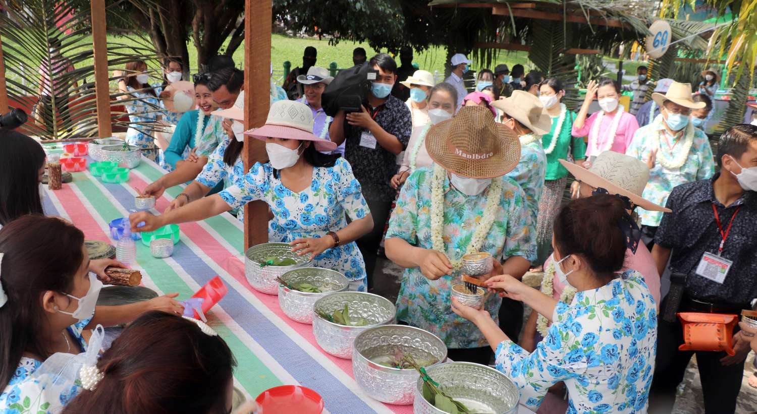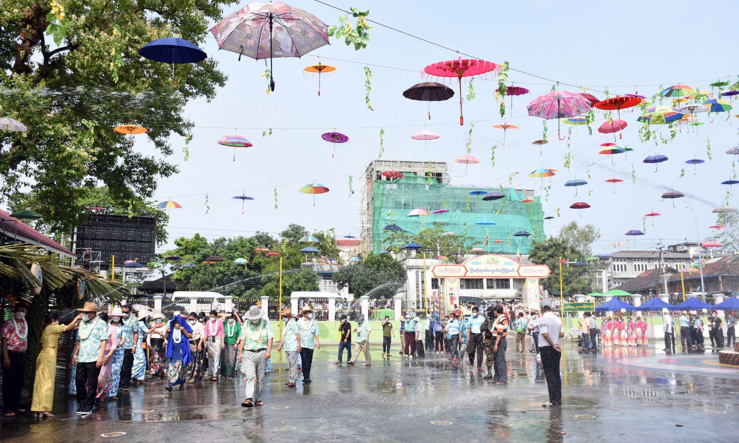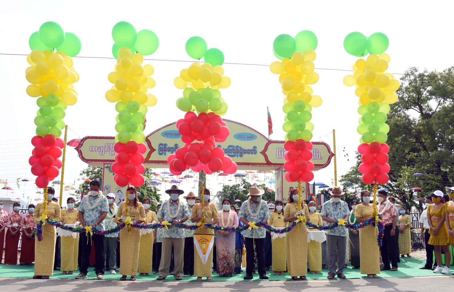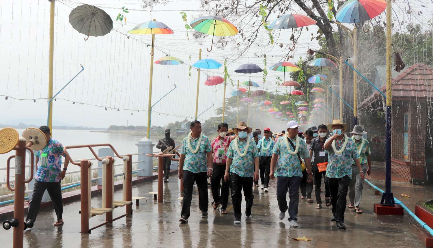 အဆိုပါ လမ်းလျှောက်သင်္ကြန်ပွဲတော်ကို ပြည်နယ်အစိုးရအဖွဲ့ဝင် စီးပွားရေးရာဝန်ကြီး ဦးမျိုးဆွေ၊ ပြည်နယ်လမ်းပန်းဆက်သွယ်ရေးဝန်ကြီး ရဲမှူးကြီးဉာဏ်မြင့်ကျော်၊ ပြည်နယ်သယံဇာတ ရေးရာဝန်ကြီး ဦးတိန့်ဆောင်တို့က ဖဲကြိုးဖြတ် ဖွင့်လှစ်ပေးကြပြီး ပြည်နယ်ဝန်ကြီးချုပ် ဦးခက်ထိန်နန်နှင့် ဇနီးဒေါ်နန်ဆိုင်း၊ ပြည်နယ်တရားလွှတ်တော်တရားသူကြီးချုပ်နှင့်ဇနီး၊ ပြည်နယ် အစိုးရအဖွဲ့ဝင် ဝန်ကြီးများနှင့်ဇနီးများက လမ်းလျှောက် သင်္ကြန်ပွဲတော်အတွင်း ပါဝင်ဆင်နွှဲလျက်ရှိ သည့် ယိမ်းအဖွဲ့များနှင့် ပြည်သူများအား သပြေခက်ဖြင့် အတာရေကို လိုက်လံဖျန်းပက်ခဲ့ကြကာ ပွဲတော်အတွင်း စတုဒိသာမဏ္ဍပ်များဖြင့် တည်ခင်းဧည့်ခံကျွေးမွေးနေမှုကို လှည့်လည်ကြည့်ရှု အားပေးခဲ့ကြသည်။